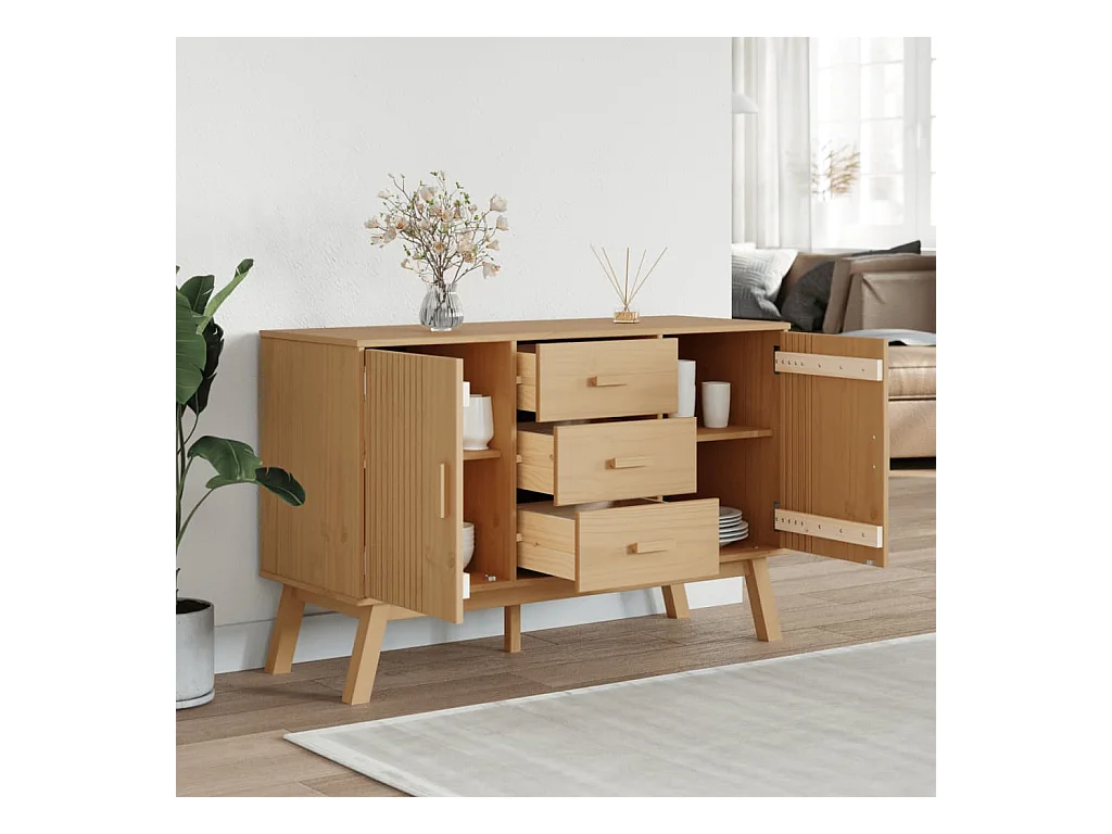 Credenza OLDEN Marrone 114x43x73,5 cm in Legno Massello di Pino