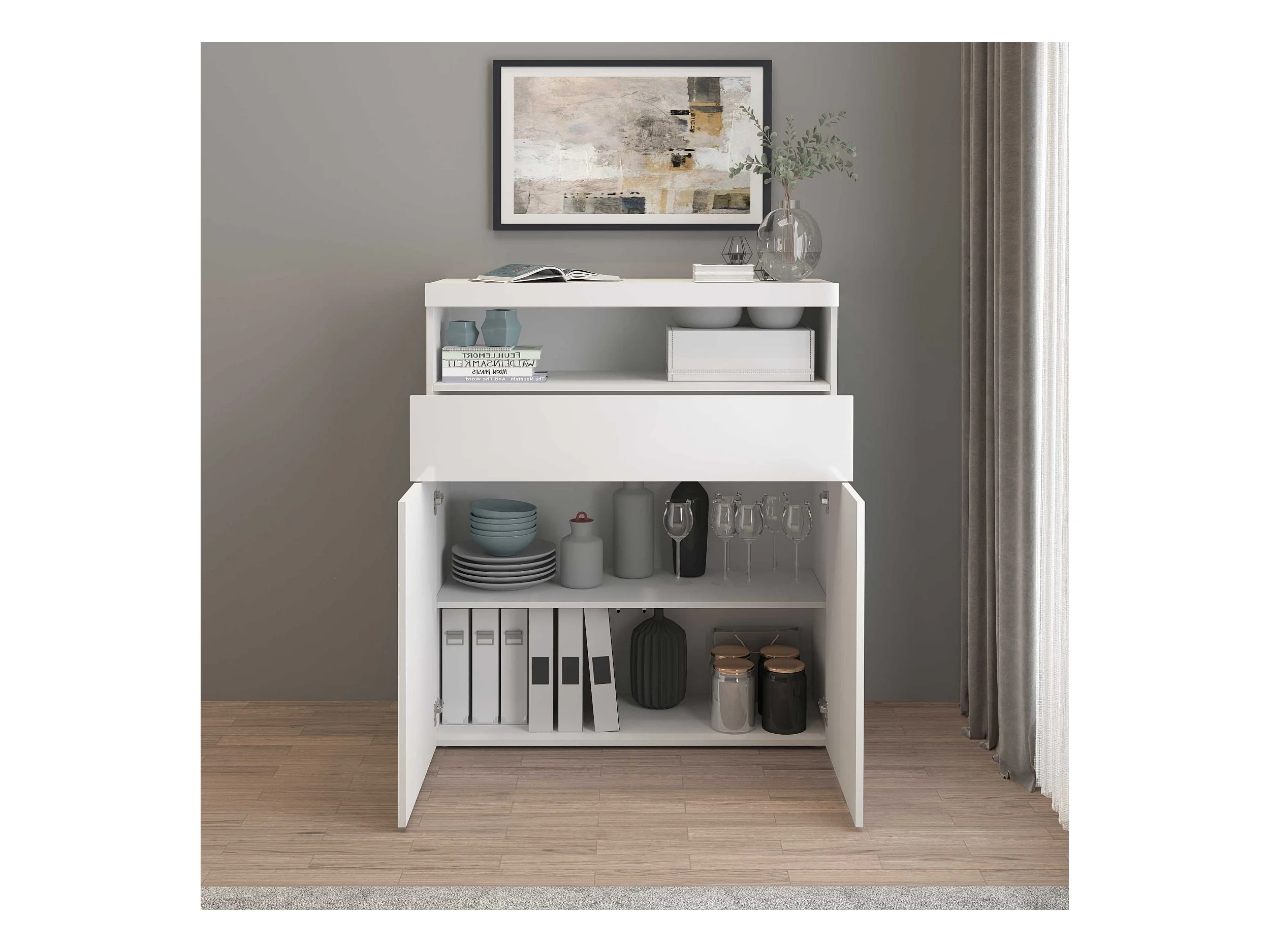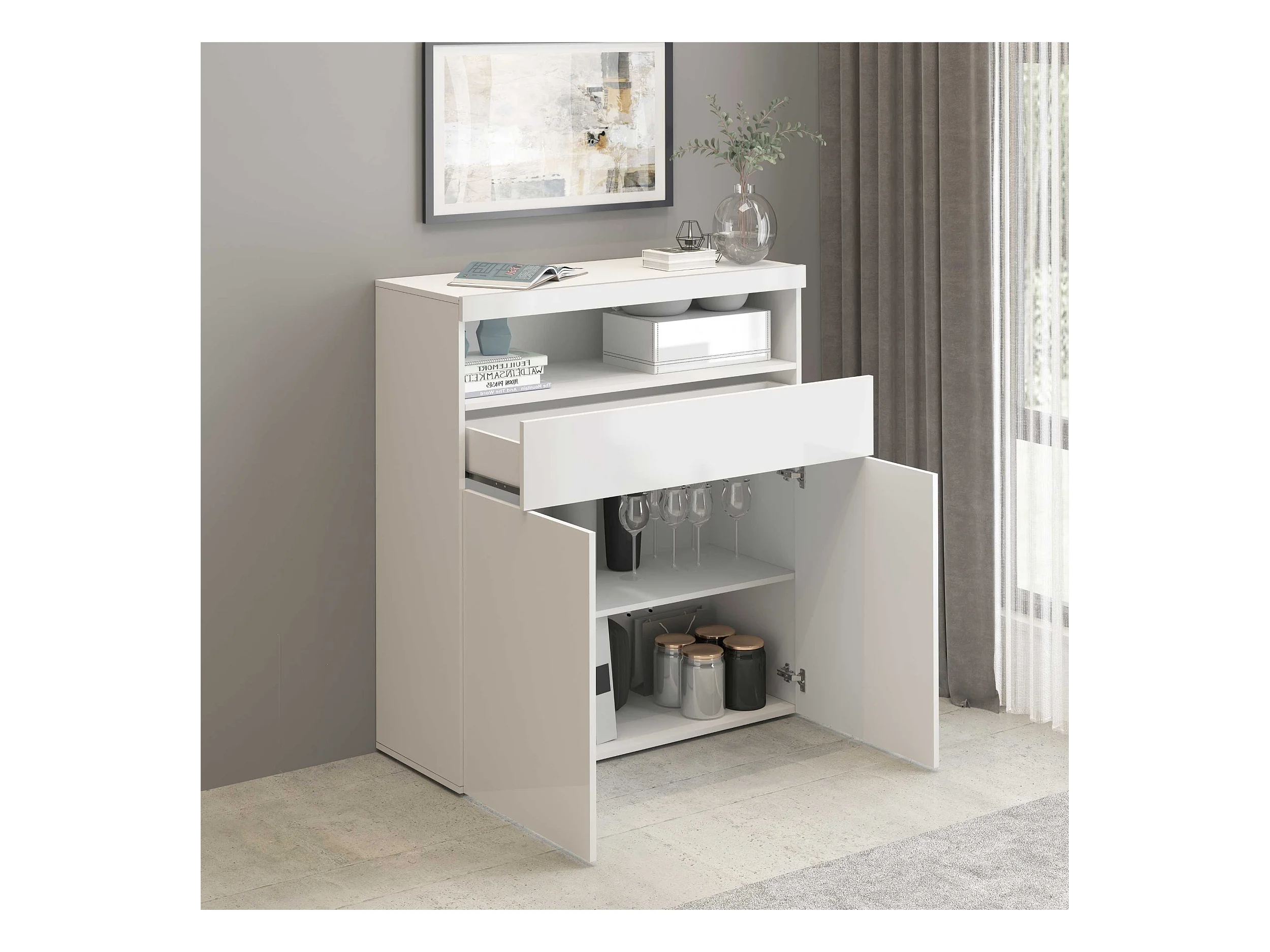 Credenza Potenza con 2 ante e 1 cassetto bianco lucido 100x40x121,5 cm