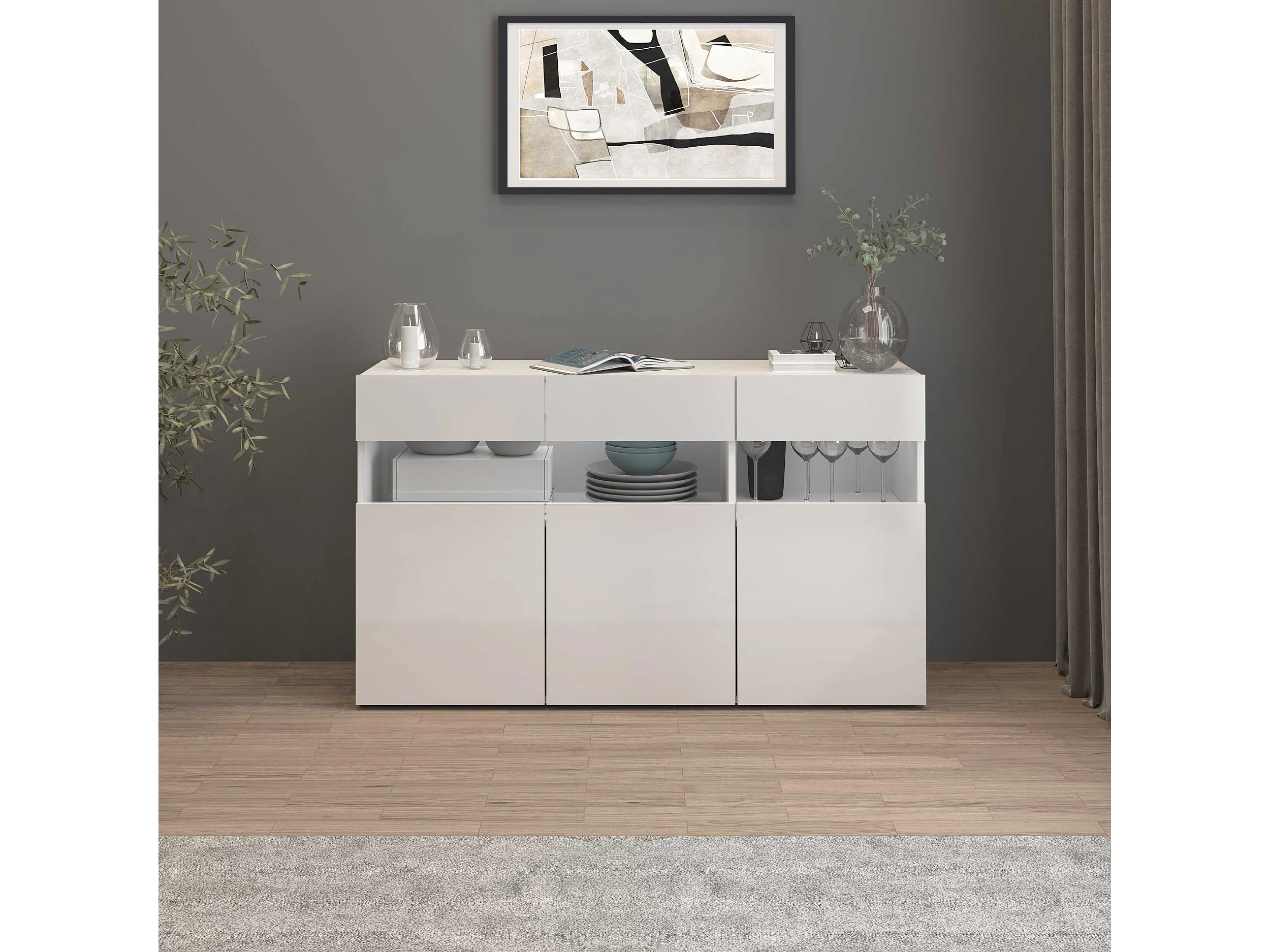 Credenza Potenza con 3 ante bianco lucido 130x40x81 cm