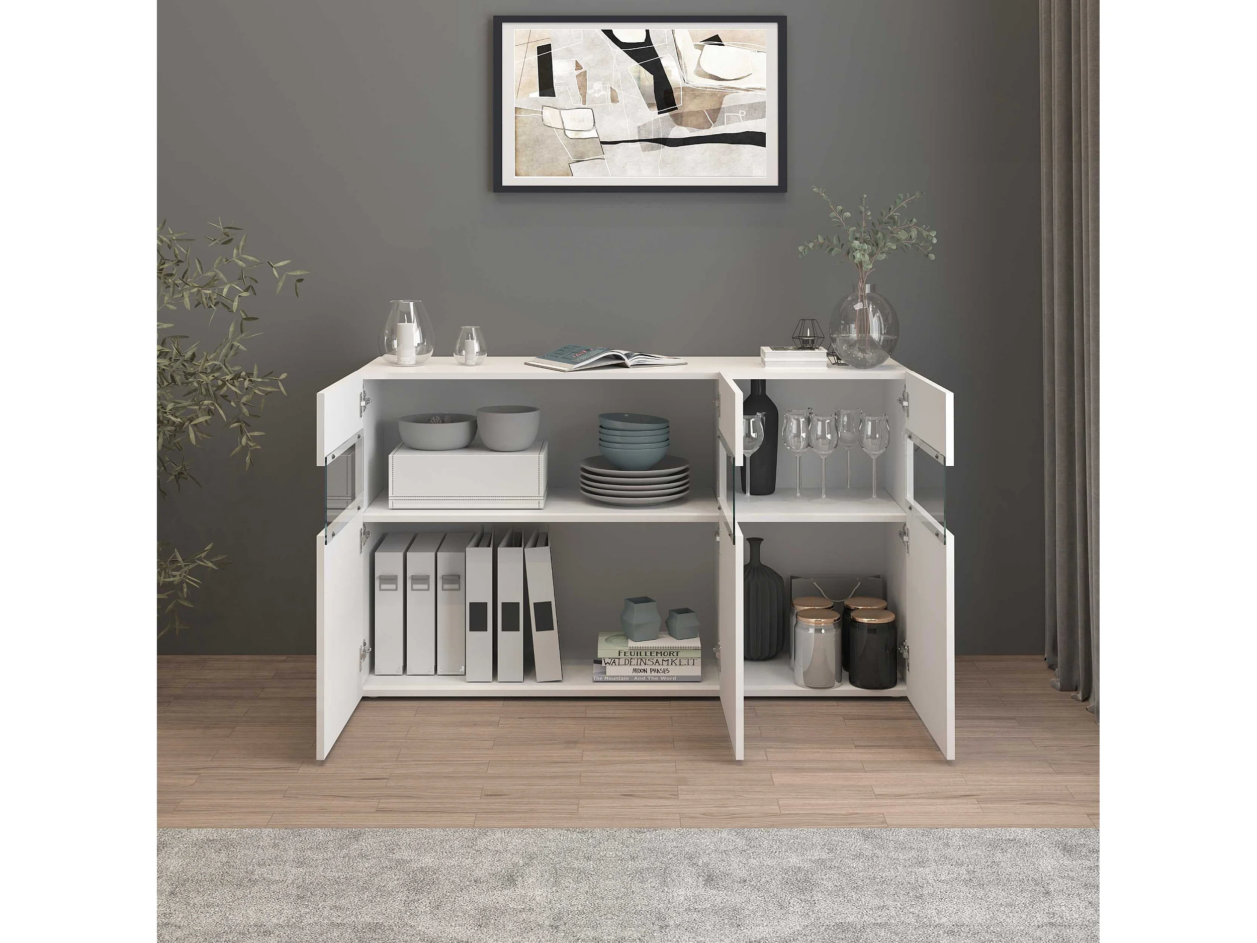 Credenza Vela con 4 ante colore bianco lucido 100x35x120,4 cm