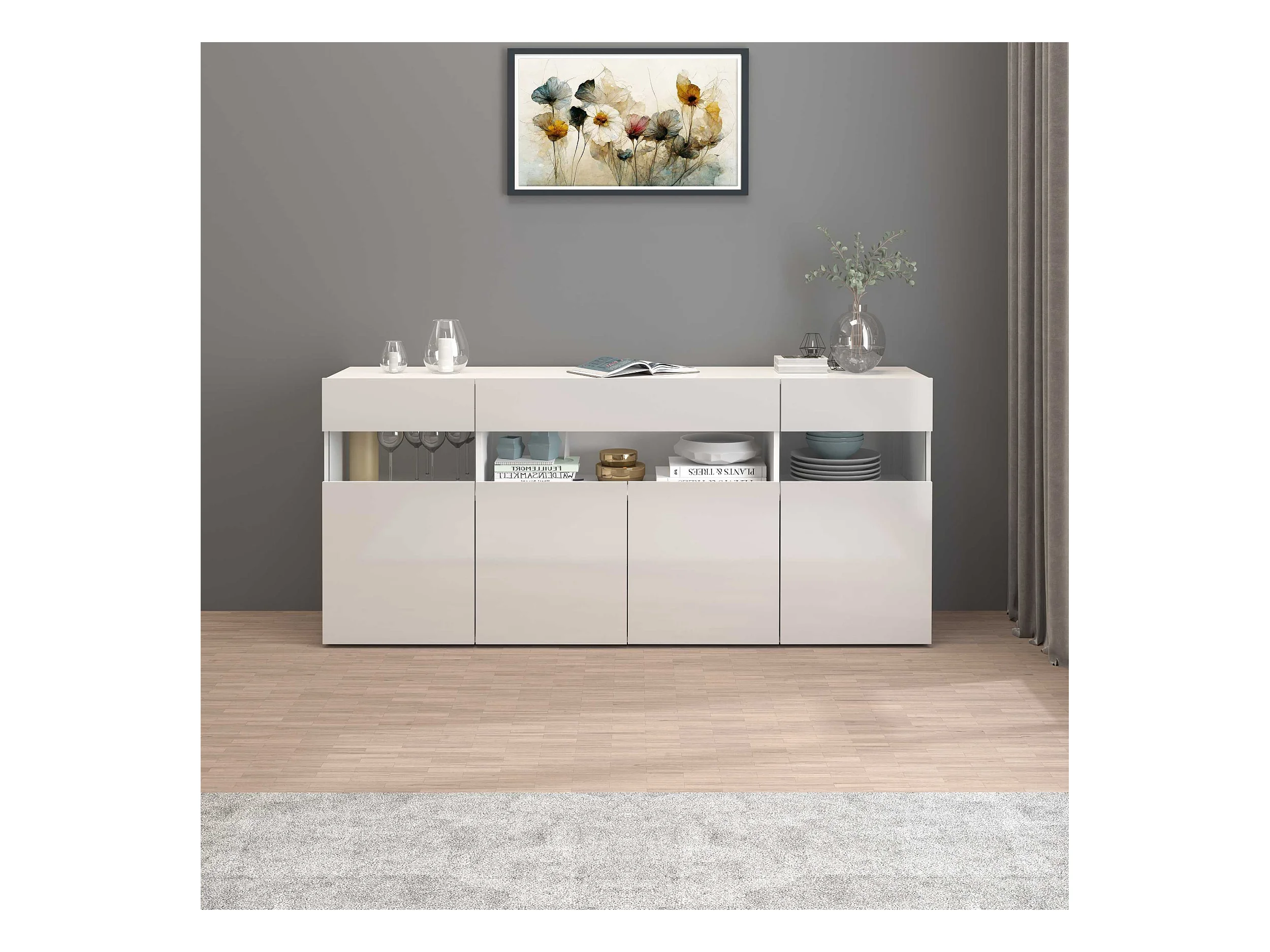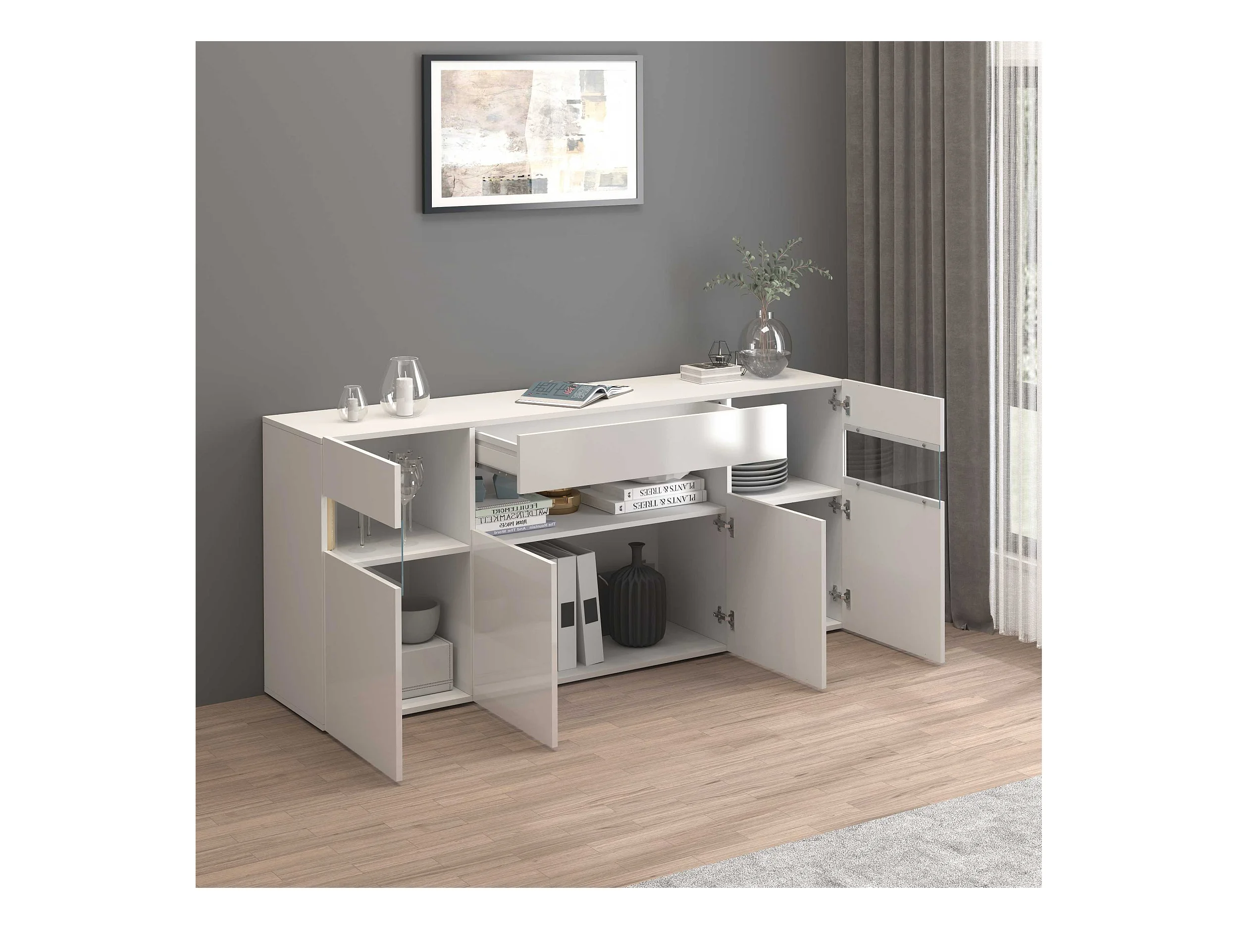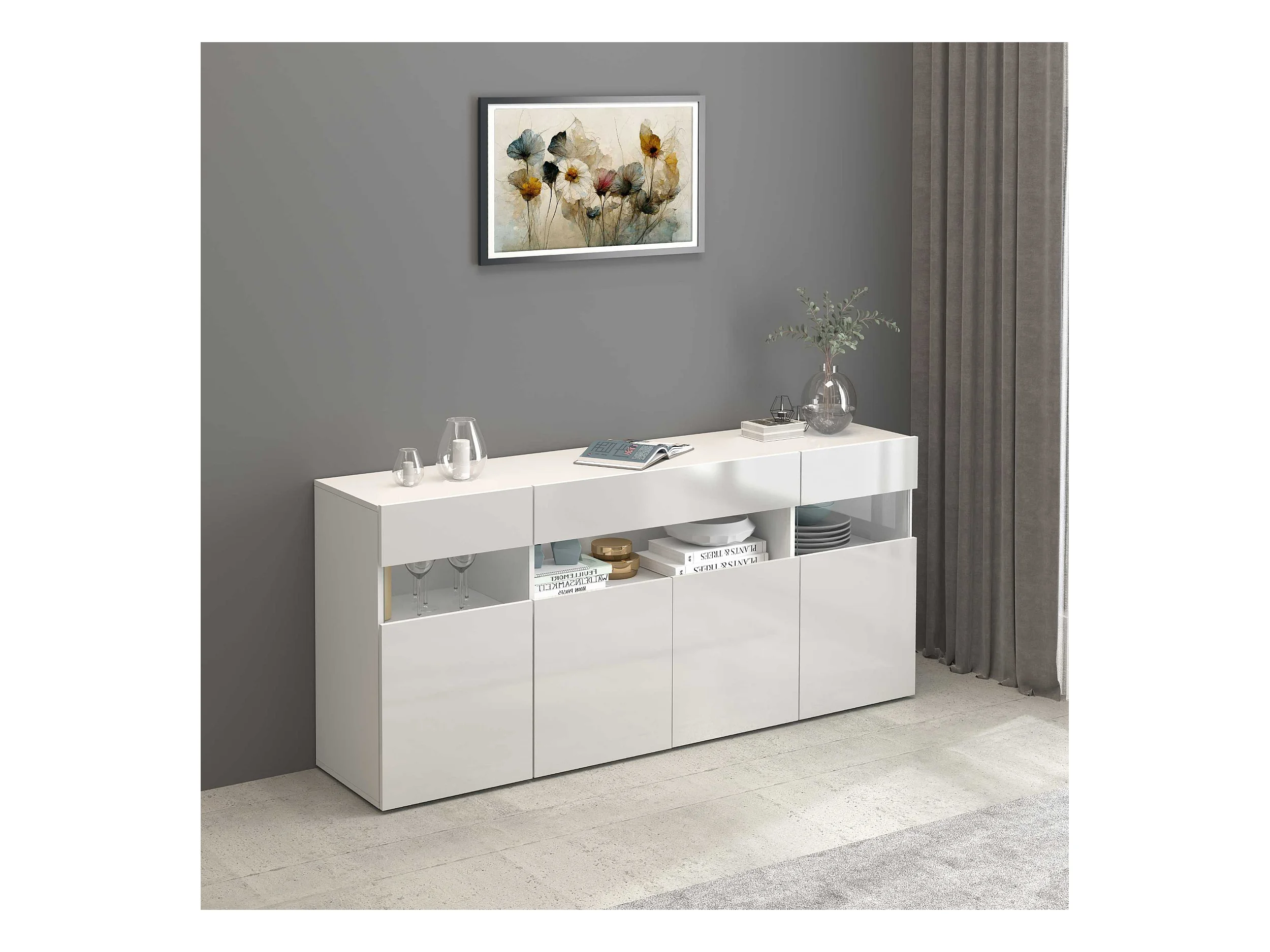 Credenza Potenza con 4 ante e 1 cassetto bianco lucido 173x40x81,5 cm
