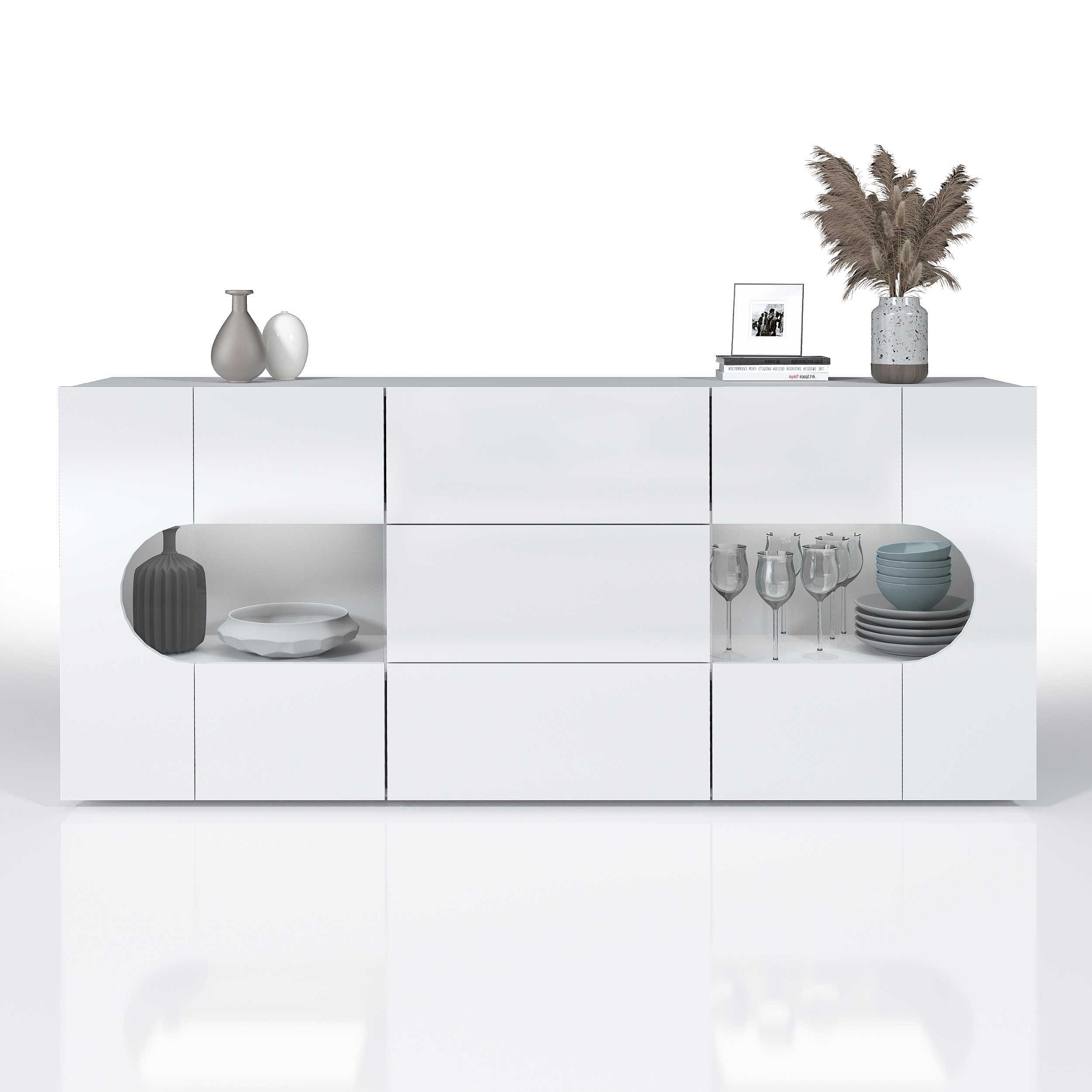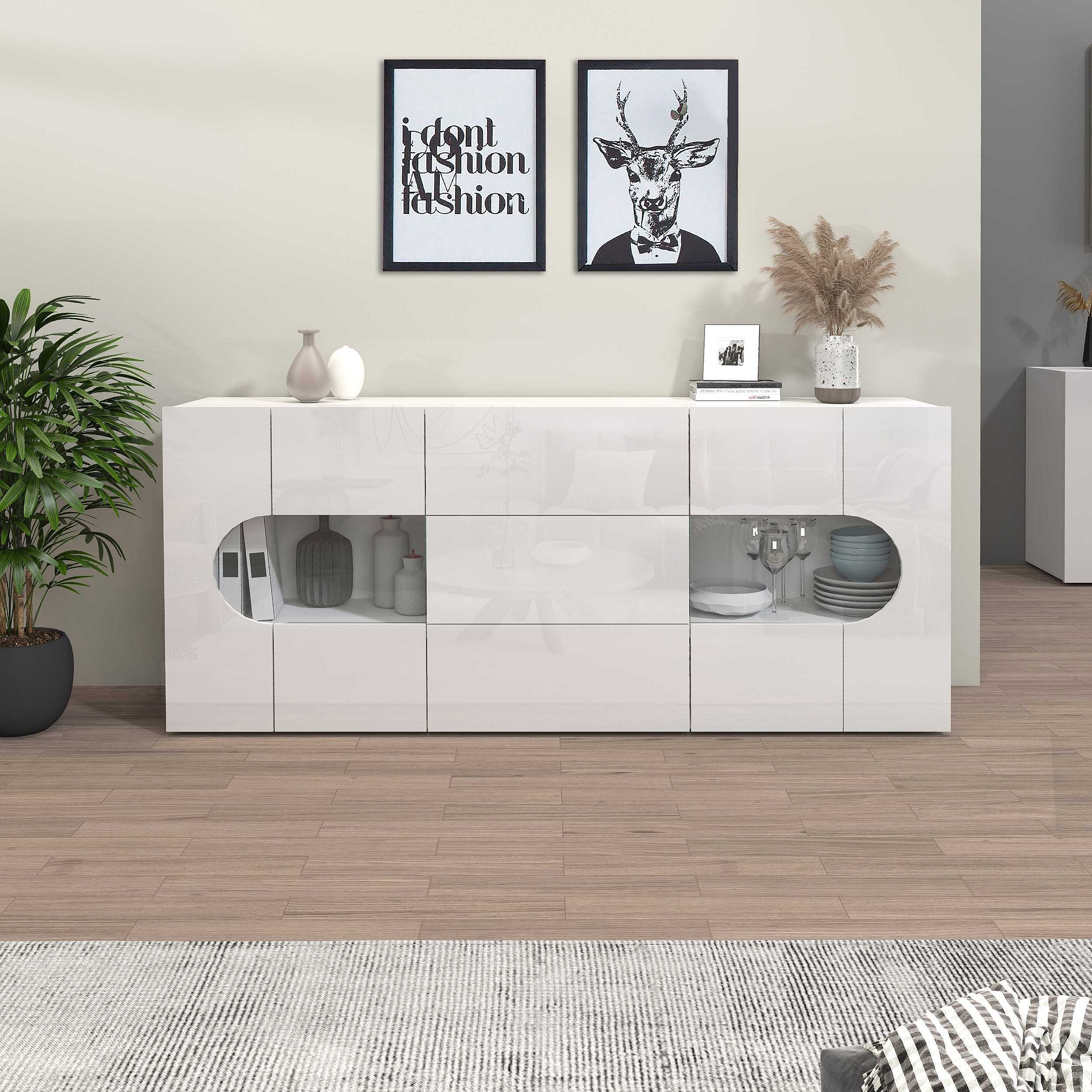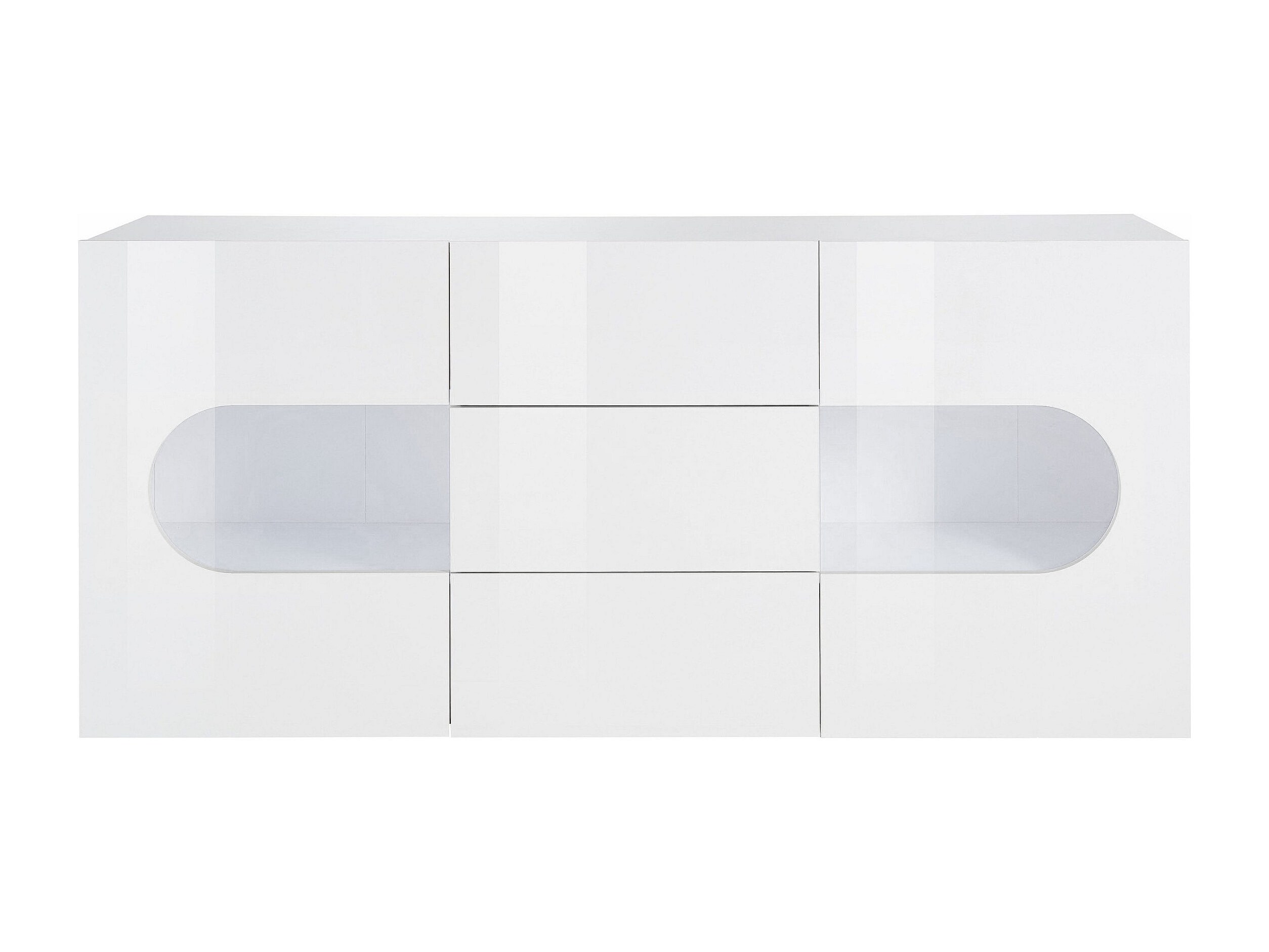 Credenza Real 2 ante 3 cassetti con inserti in vetro espositivi bianco lucido 180x40x80 cm