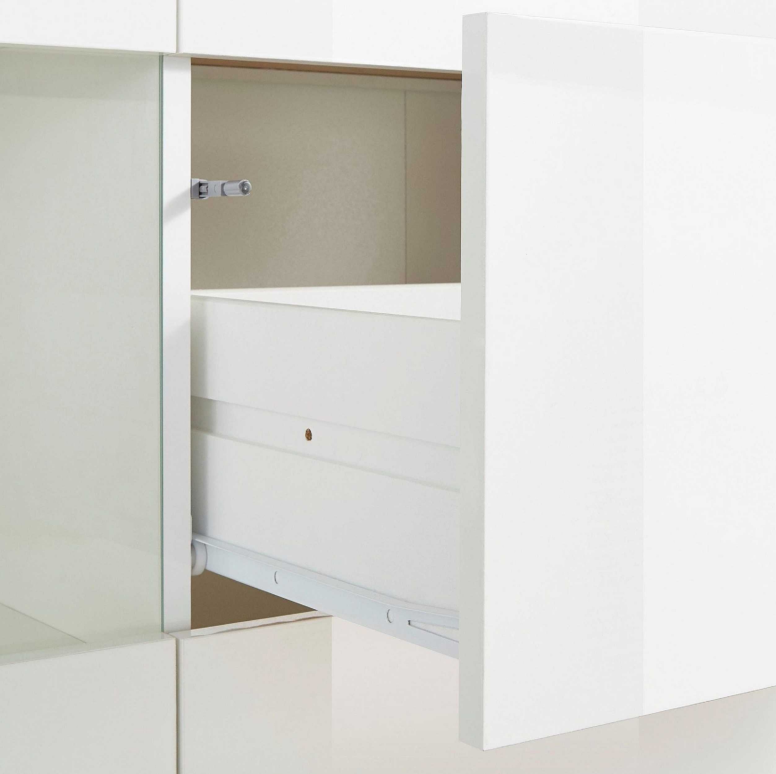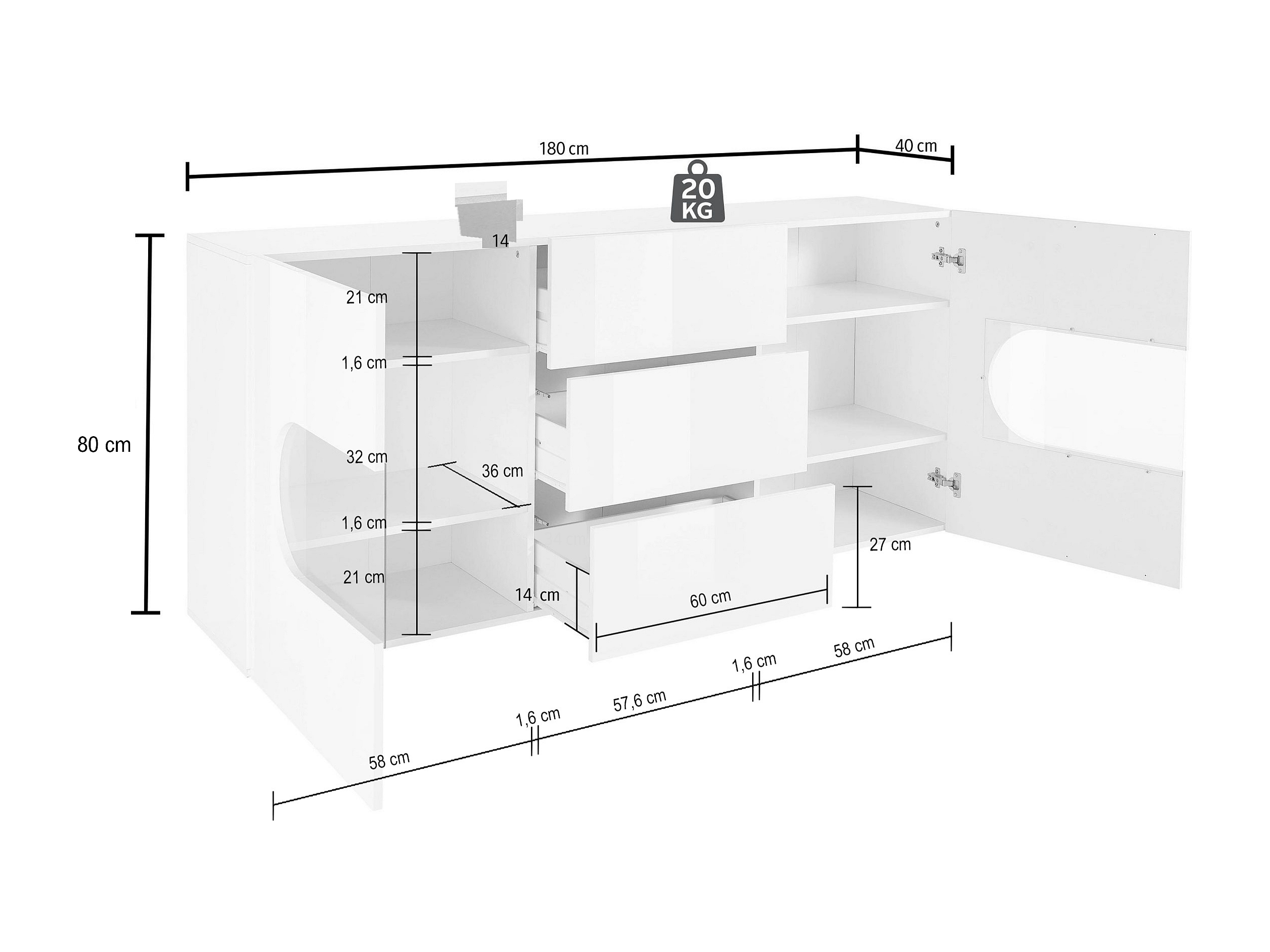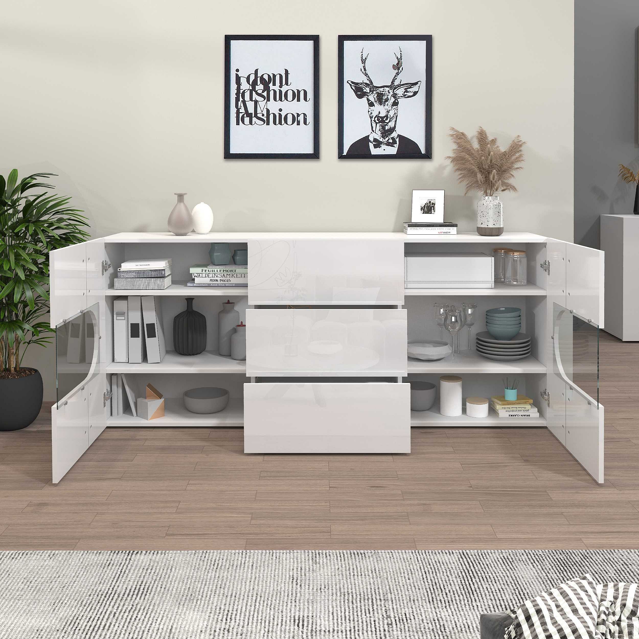 Credenza Real 2 ante 3 cassetti con inserti in vetro espositivi bianco lucido 180x40x80 cm