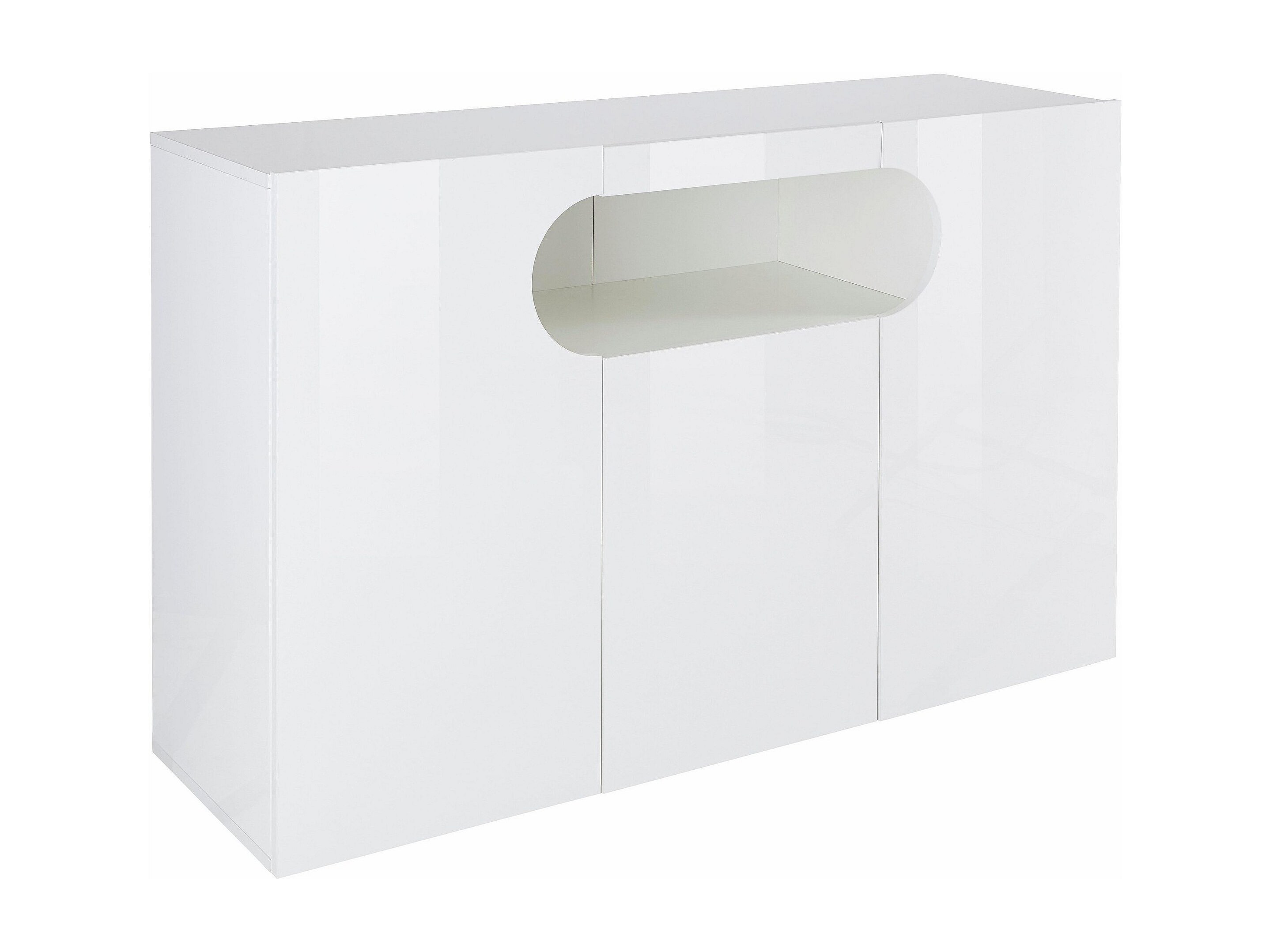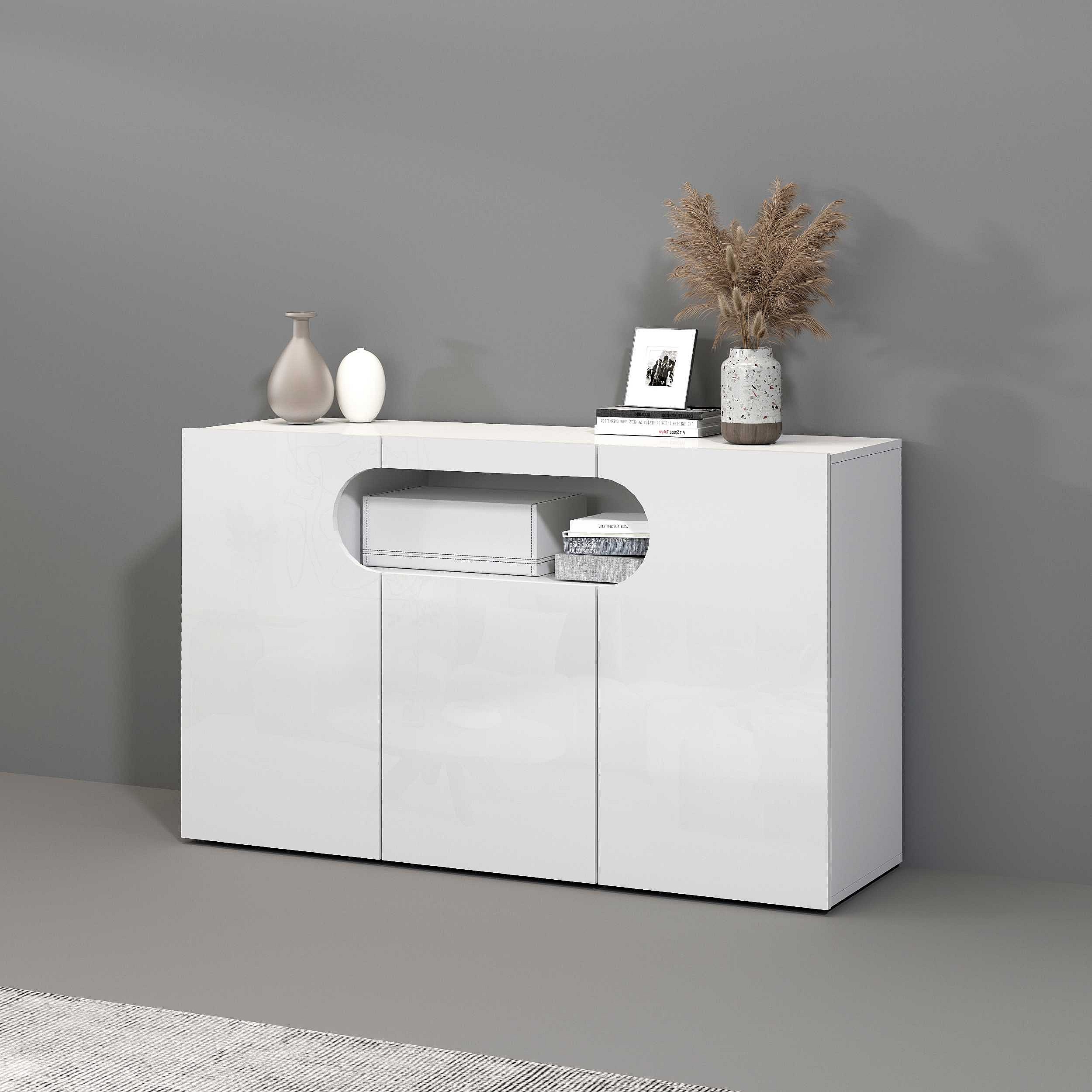 Credenza Real a 3 ante e 1 vano aperto bianco lucido 130x40x80cm