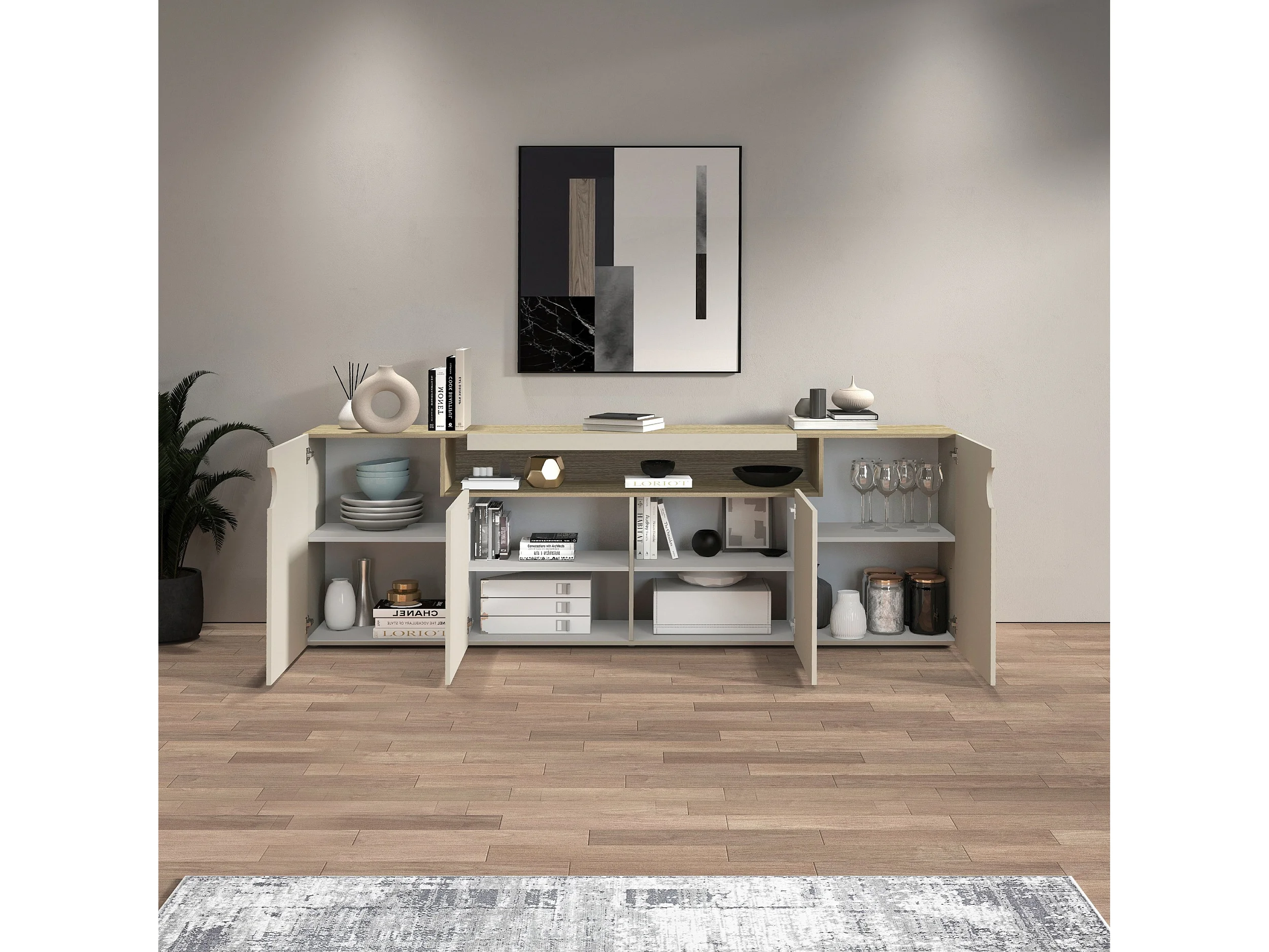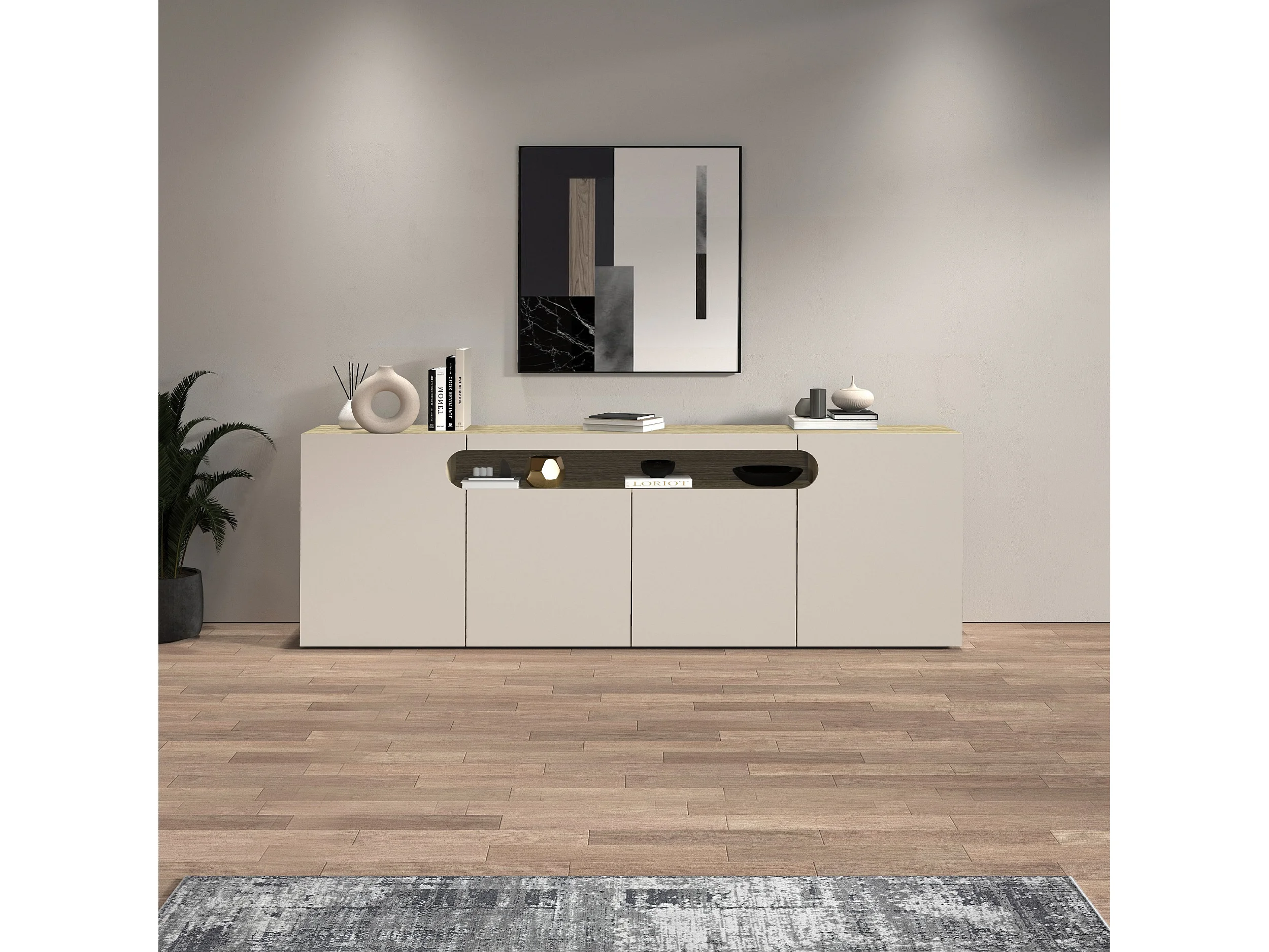 Credenza Real con 4 ante e 1 vano aperto cashmere e rovere chiaro 200x40x80 cm