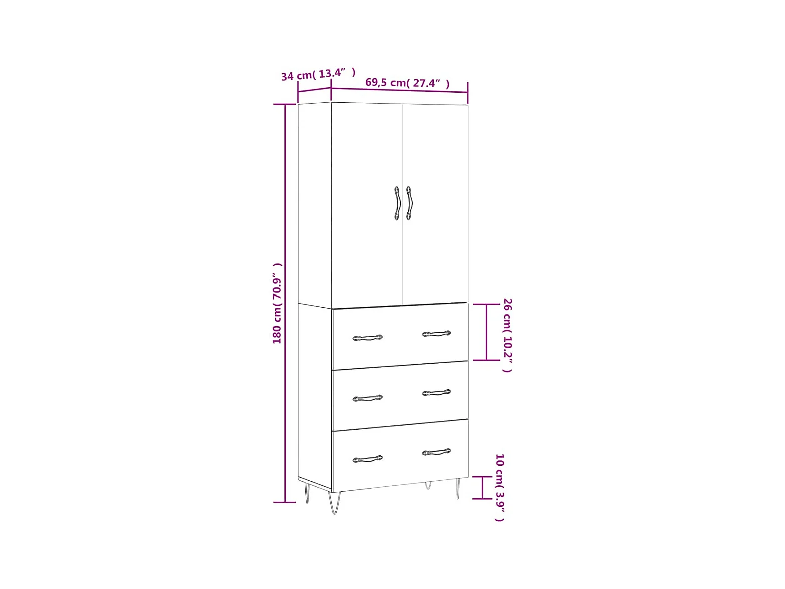 Credenza Rovere Marrone 69,5x34x180 cm in Legno Multistrato