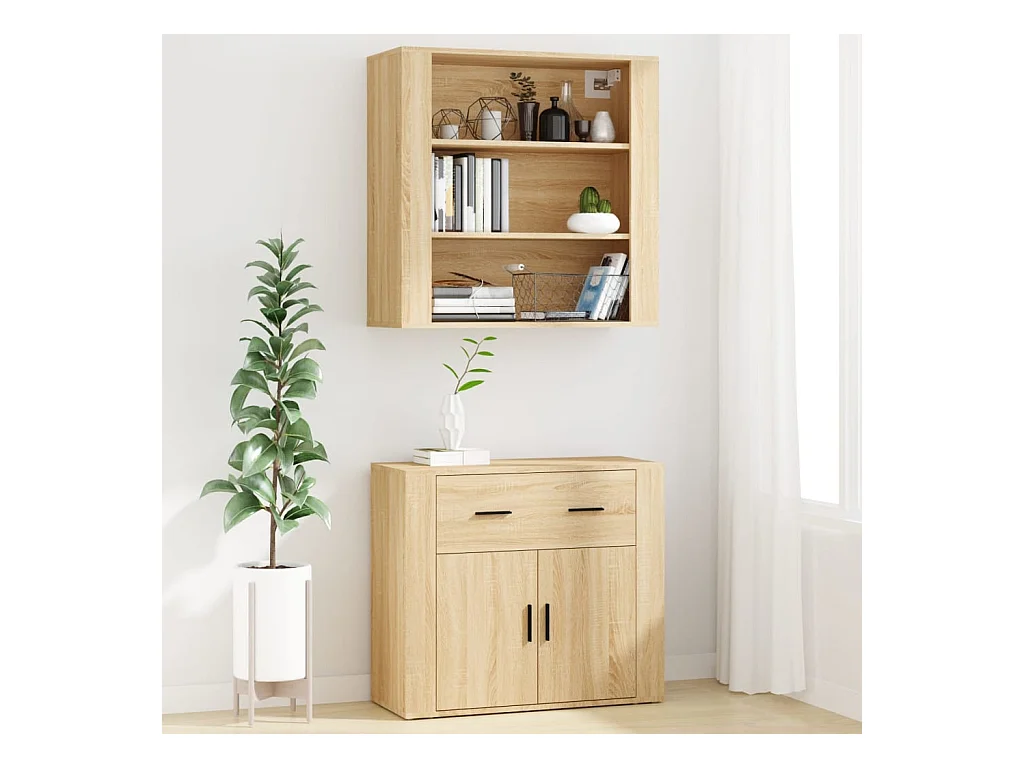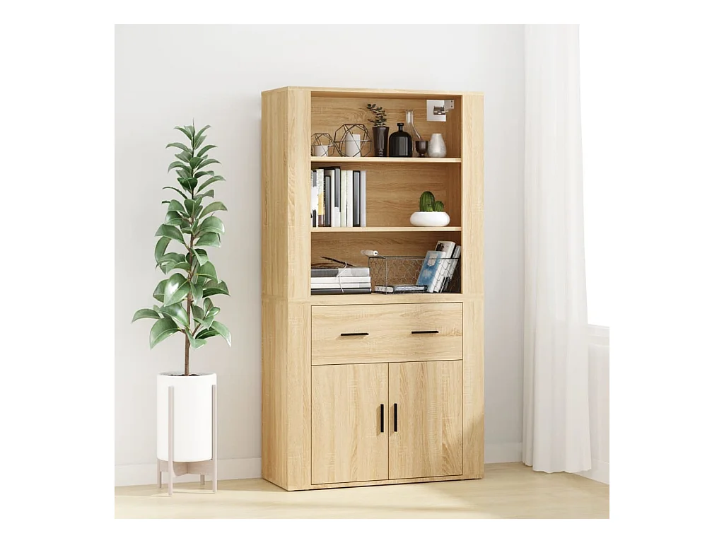 Credenza Credenza Comò Armadietto Contenitore Organizzatore Cucina Soggiorno Soggiorno Alto Legno composito Sonoma Marrone 02_0034217