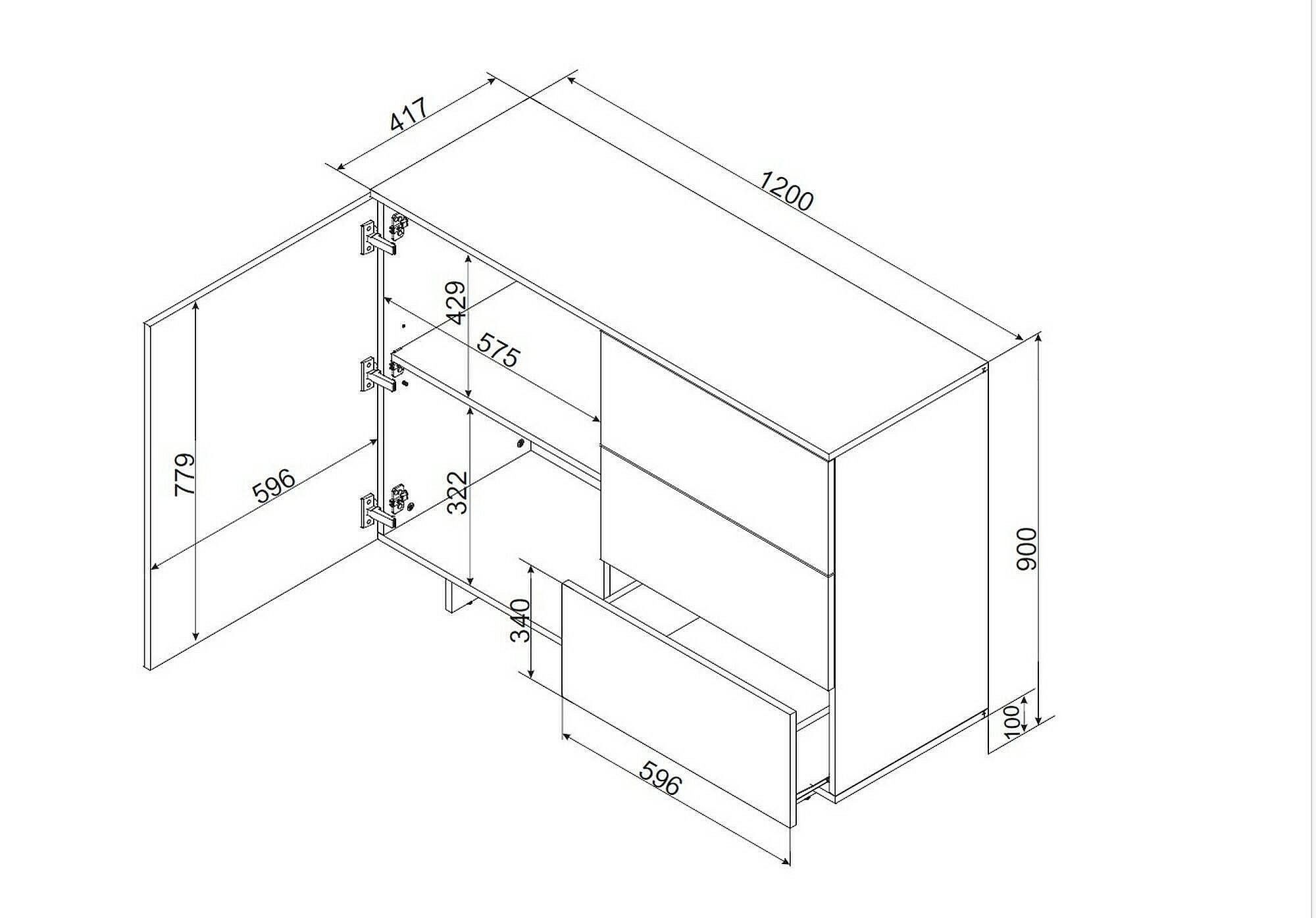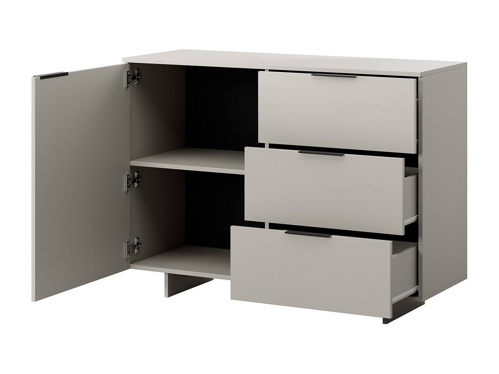 Credenza Rubiera, Madia da salotto con un'anta battente e tre cassetti, Rialzato da terra, 120x42 h90 cm, Beige