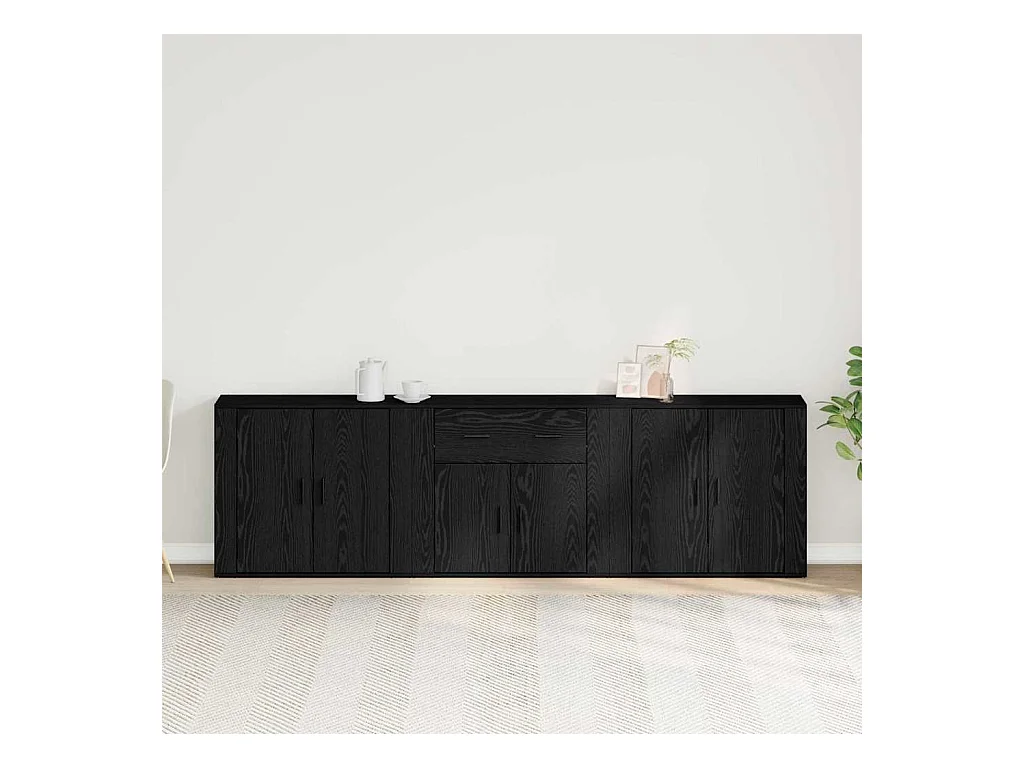 Credenza | Sideboard | Madie 3 pz Rovere Nero Legno ingegnerizzato