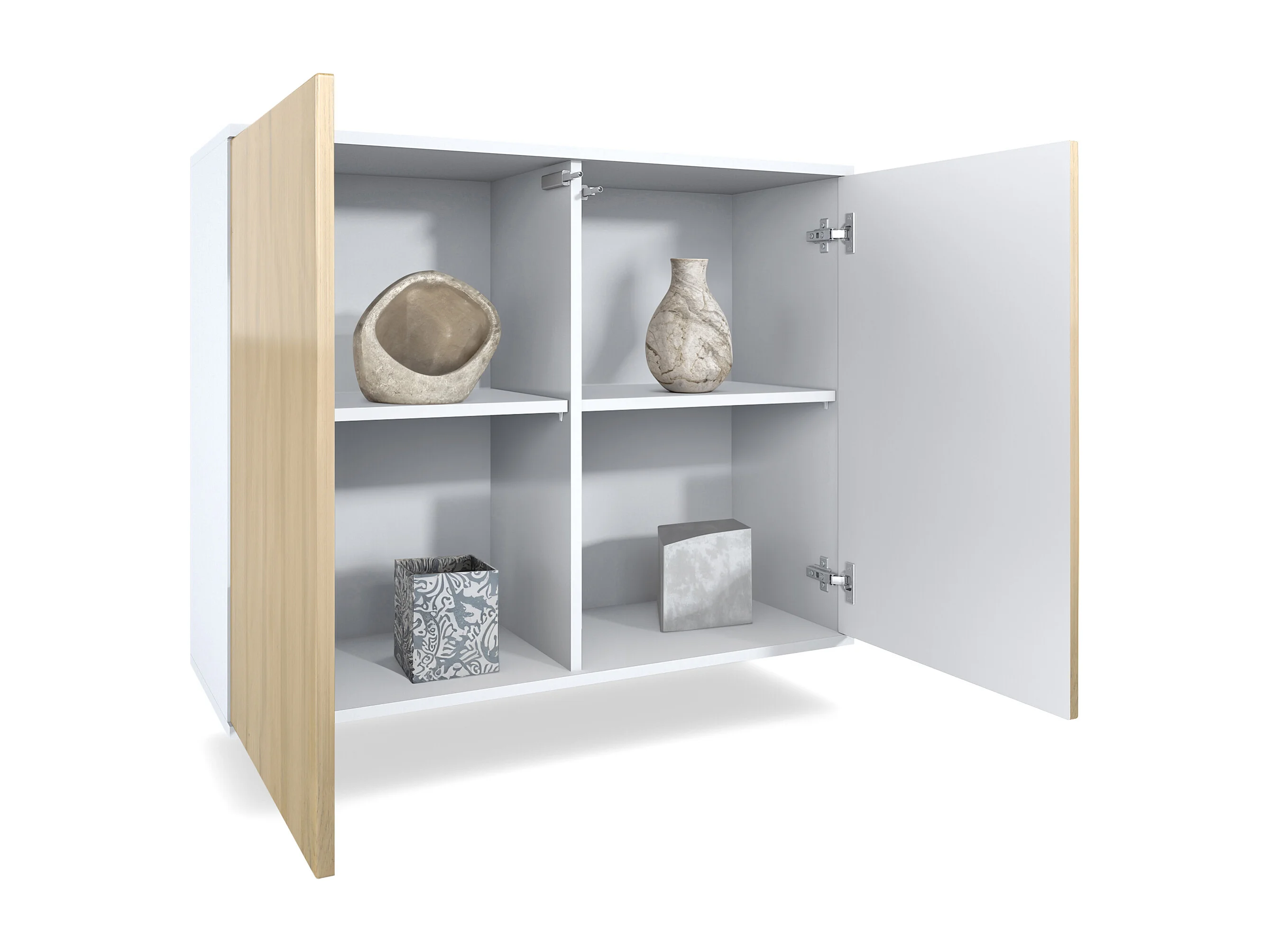 Credenza Rova V3 – Mobile da cucina moderno con 4 ante Push-to-Open bianco opaco / beige lucido (92,5 x 73.5 x 35)
