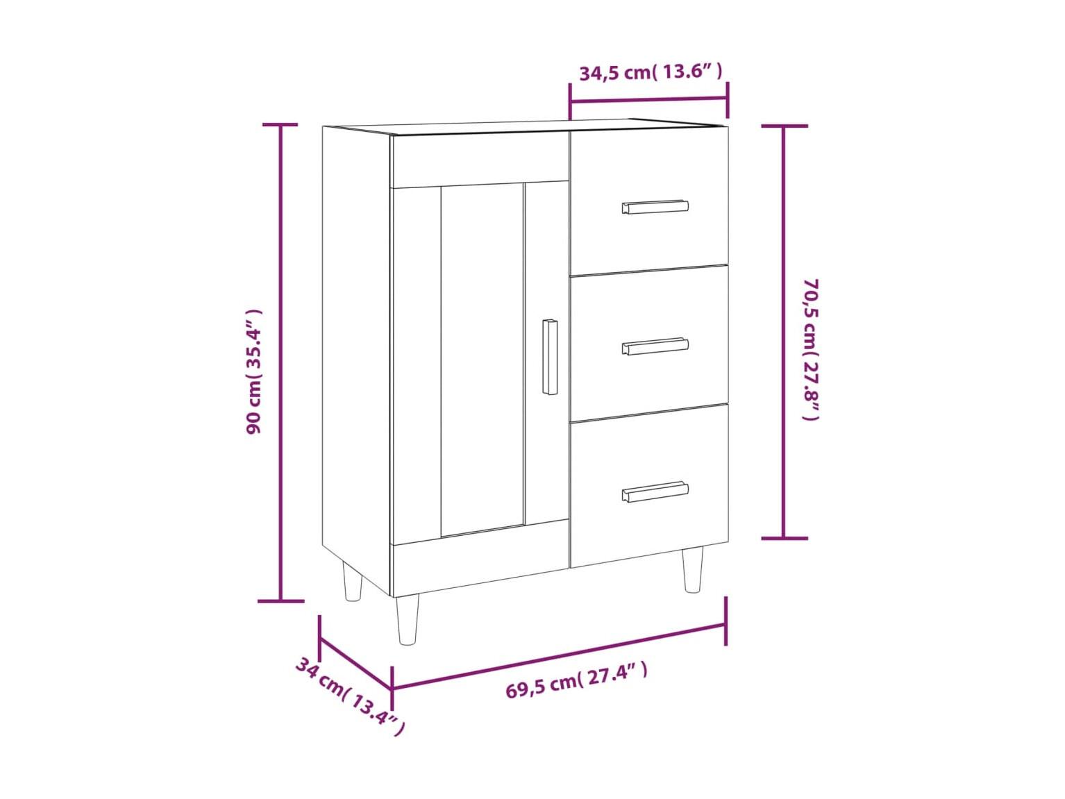 Credenza Sonoma grigia 69,5x34x90 cm Legno ingegnerizzato
