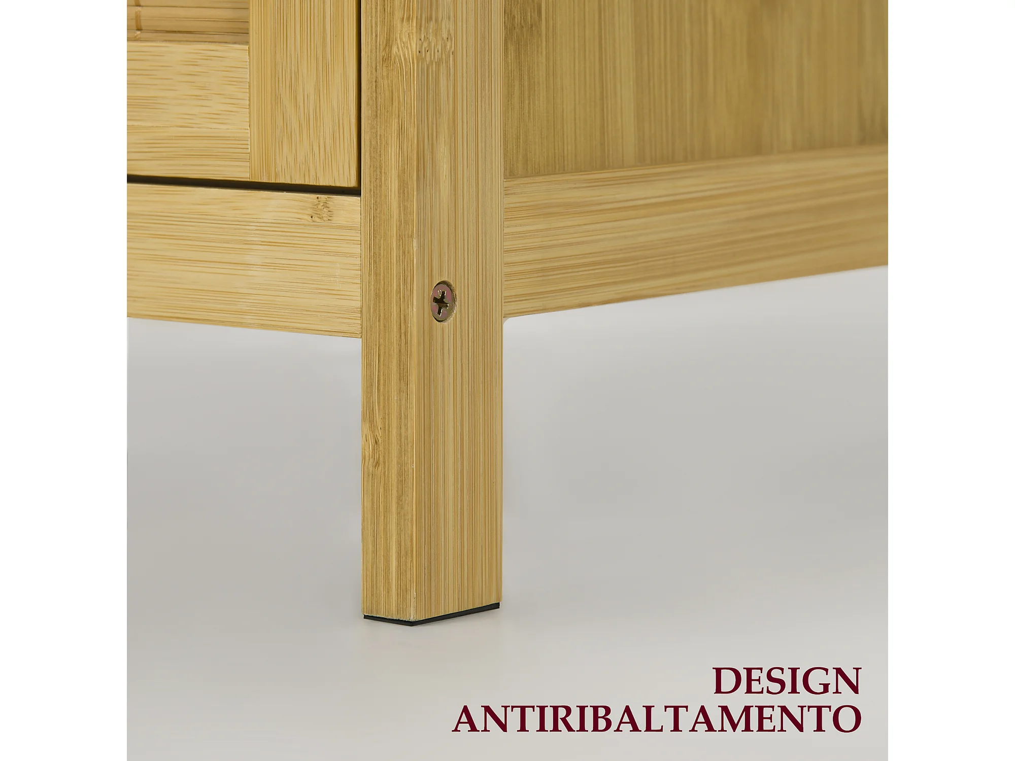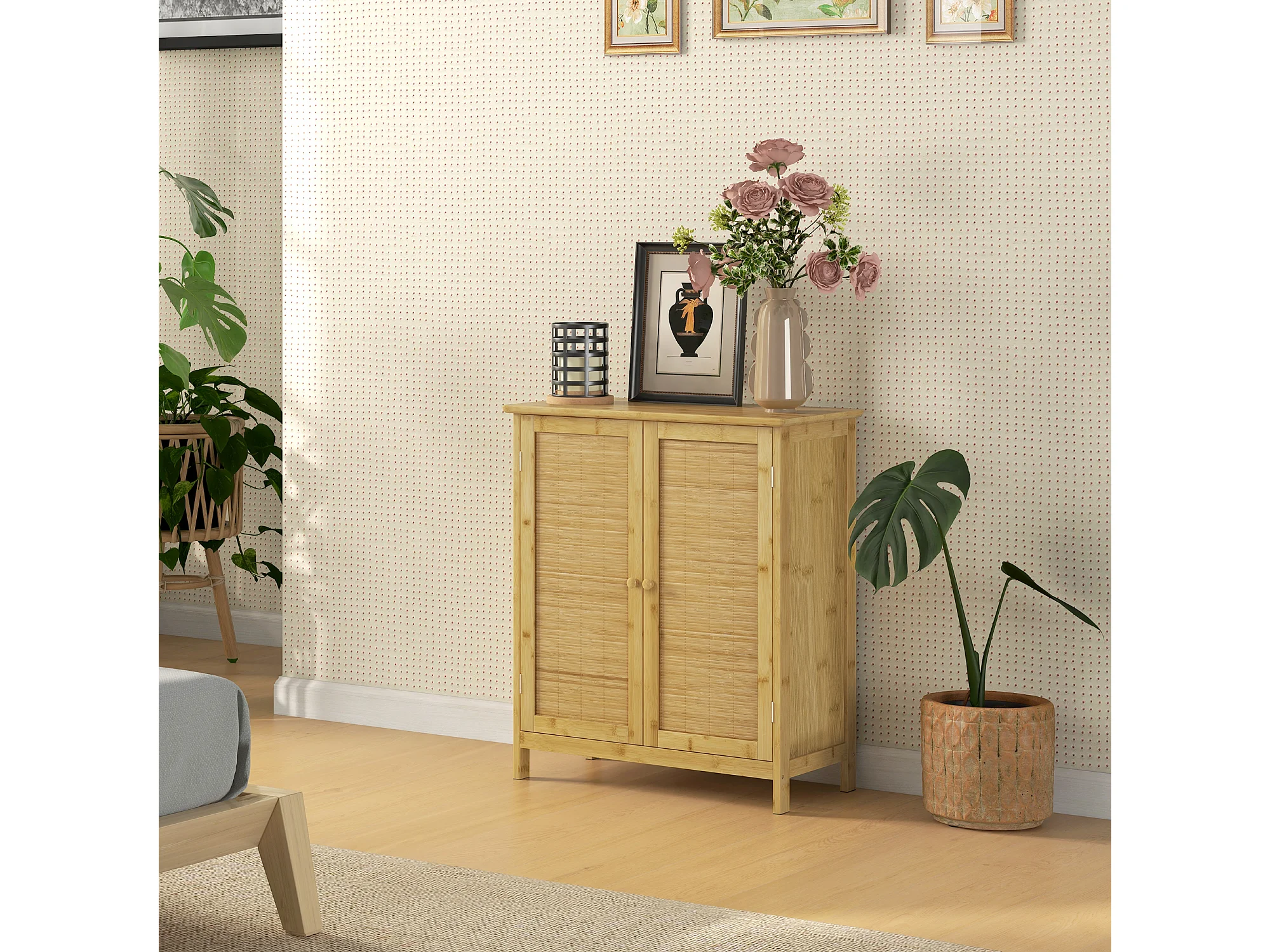 Credenza stile boho a 2 ante in rattan e bambù colore naturale