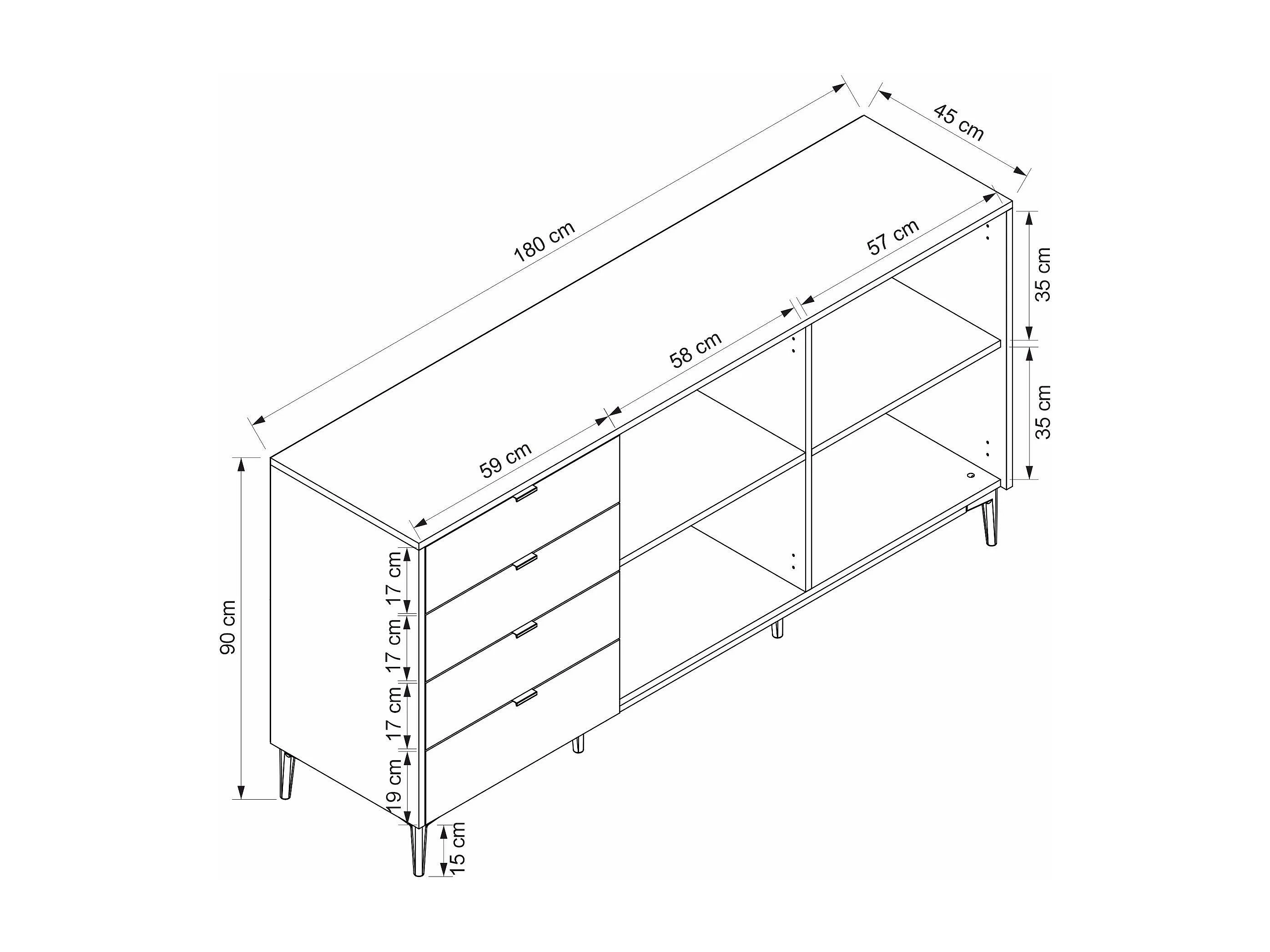 Credenza – 180 cm – Rovere Bianco e Zaffiro – Truciolare nobilitato