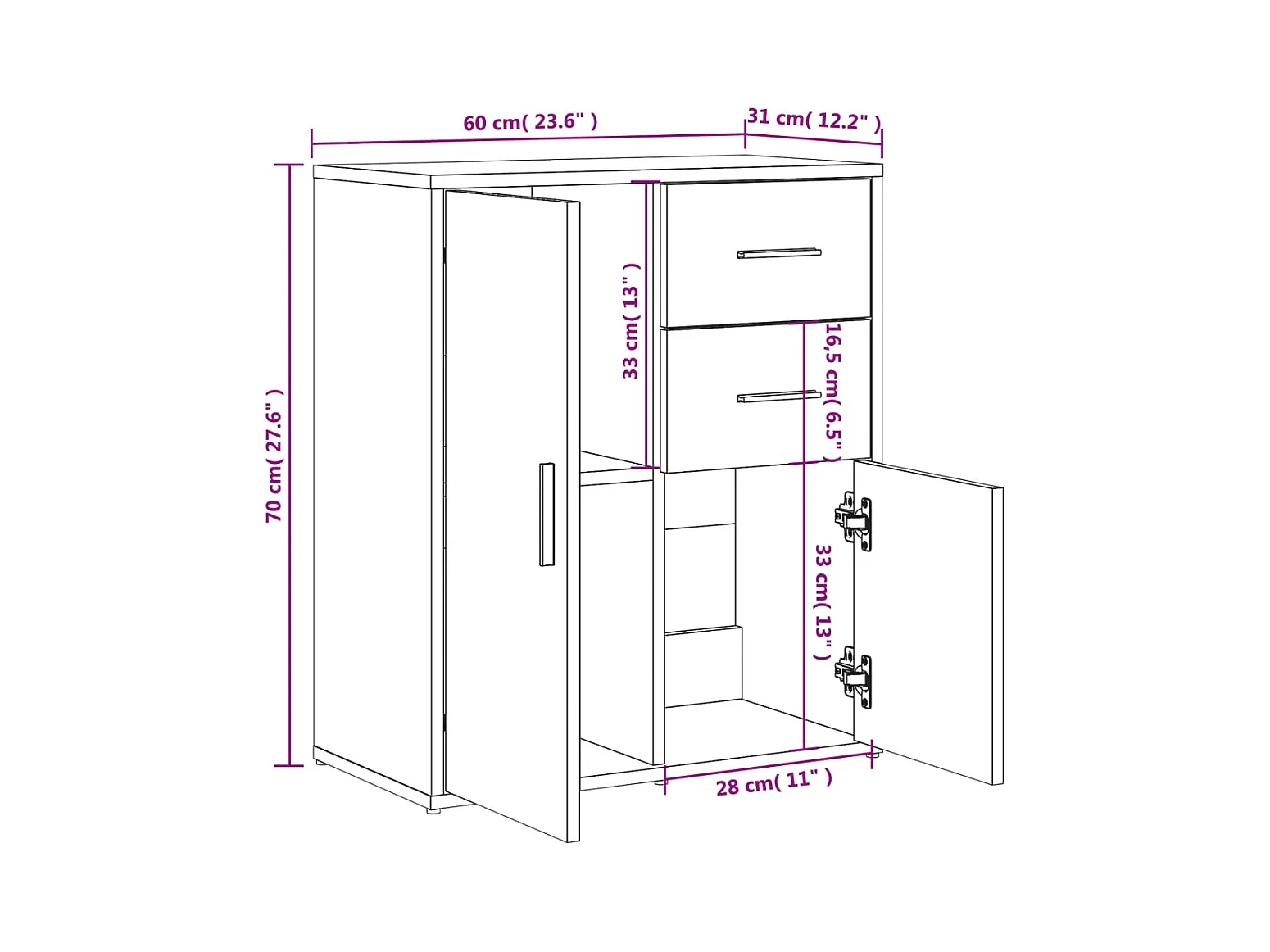 Credenza Bianca 60x31x84 cm in Legno Multistrato