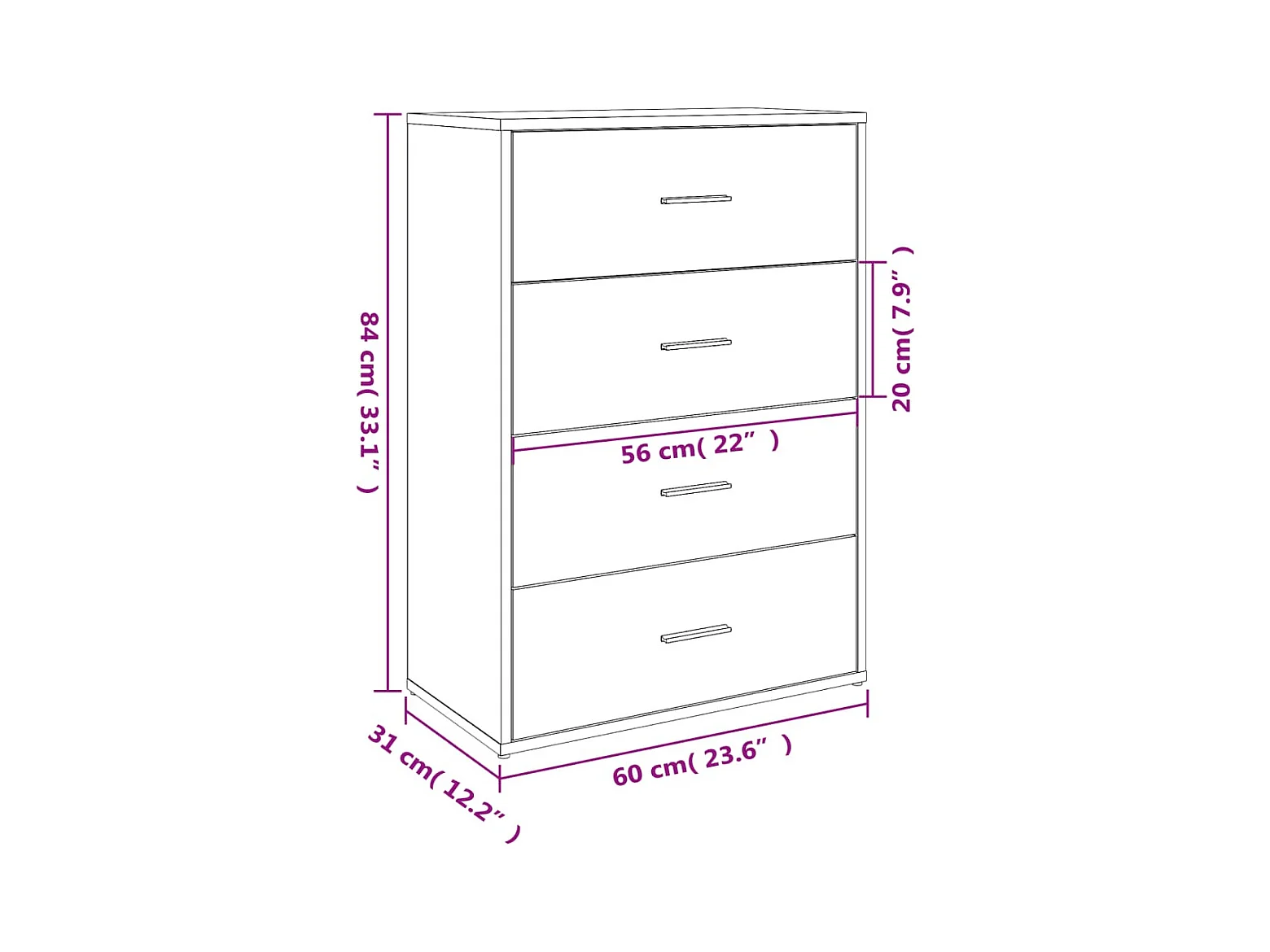 Credenza Grigio Sonoma 60x31x84 cm in Legno Multistrato