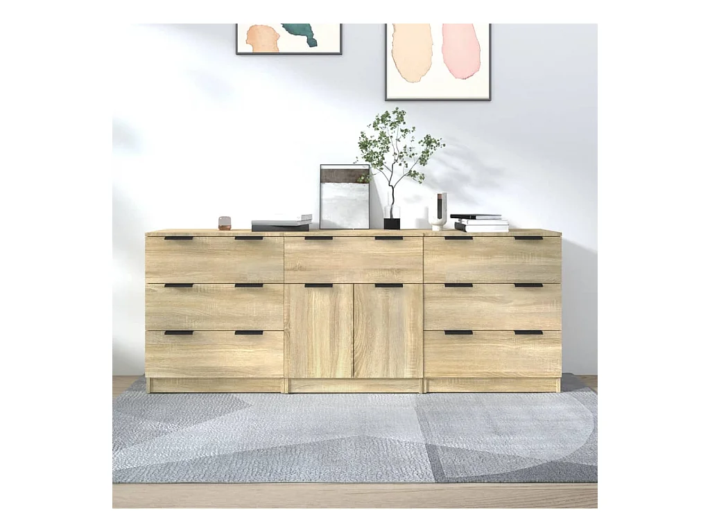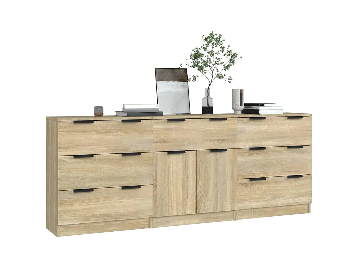 Set da buffet da 3 pezzi in legno ingegnerizzato Sonoma Oak