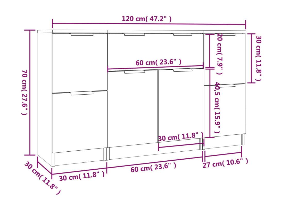 Credenze a 3 pezzi in rovere Sonoma Legno ingegnerizzato