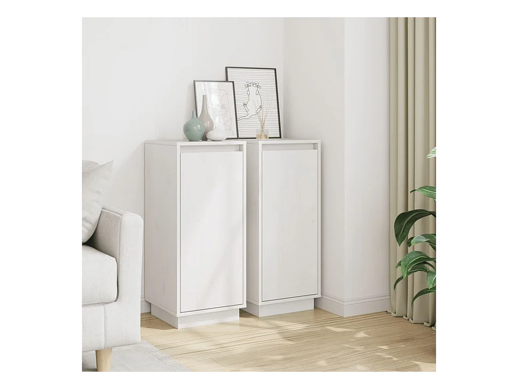 Credenze | Buffet | Armadi Bianche 2 pz 32x34x75 cm in Legno Massello di Pino