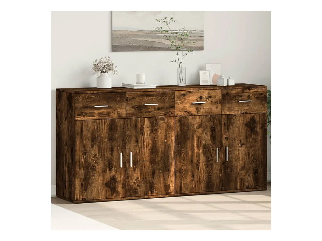 Credenze | Buffet | Armadi 2 pz Rovere Fumo 79x38x80 cm in Legno Multistrato