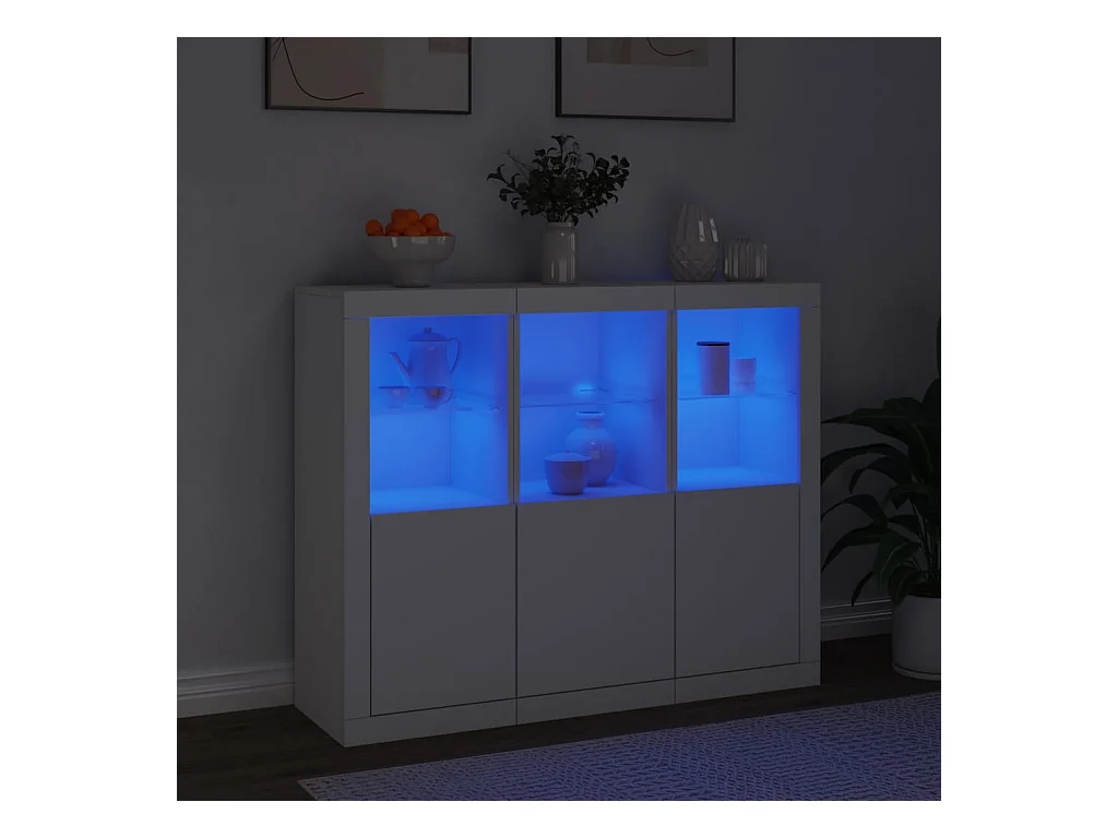 Credenze | Buffet | Armadi con Luci LED 3 pz Bianche in Legno Multistrato