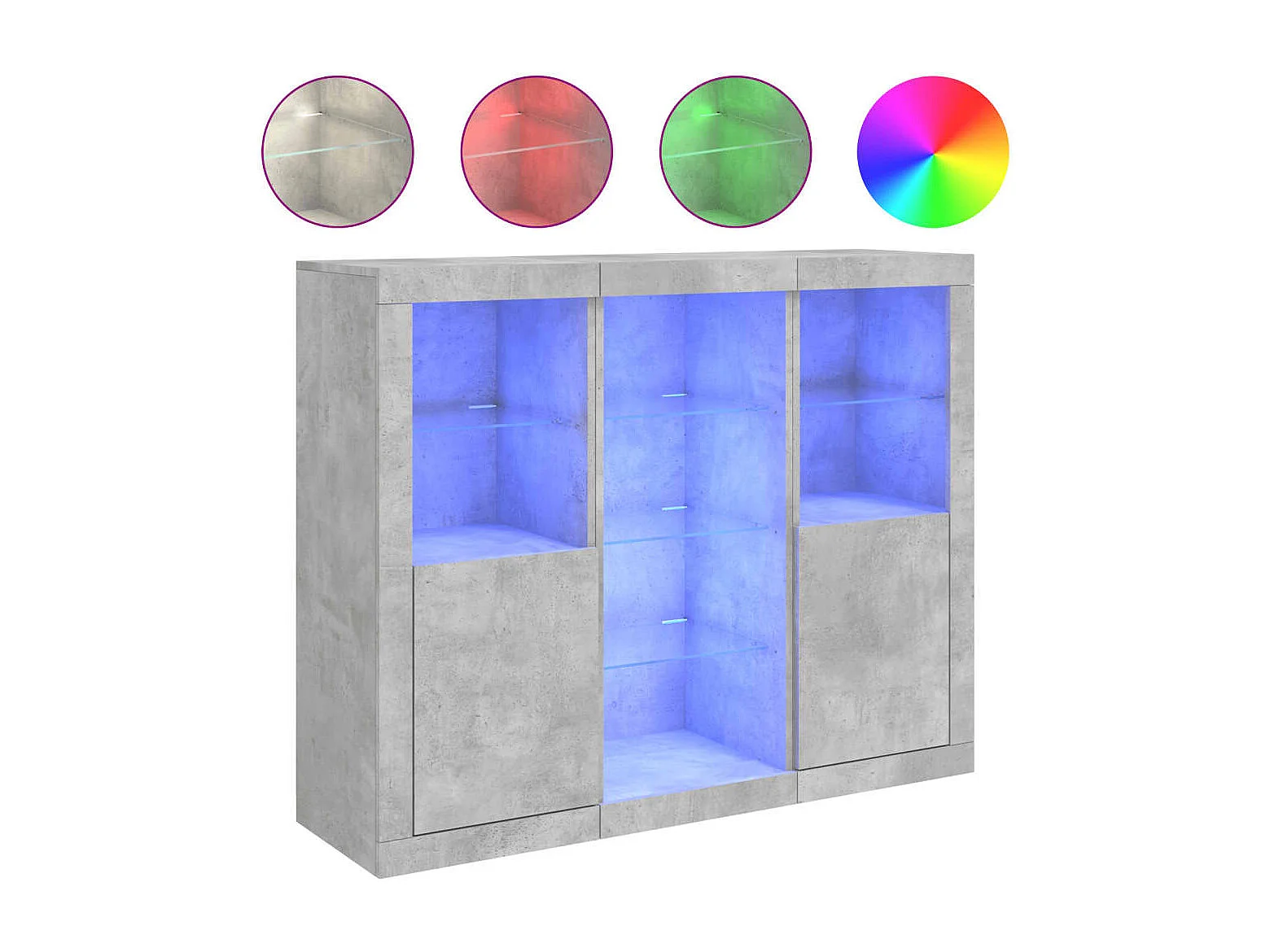 Credenze | Buffet | Armadi con Luci LED 3 pz Grigio Cemento in Legno Multistrato