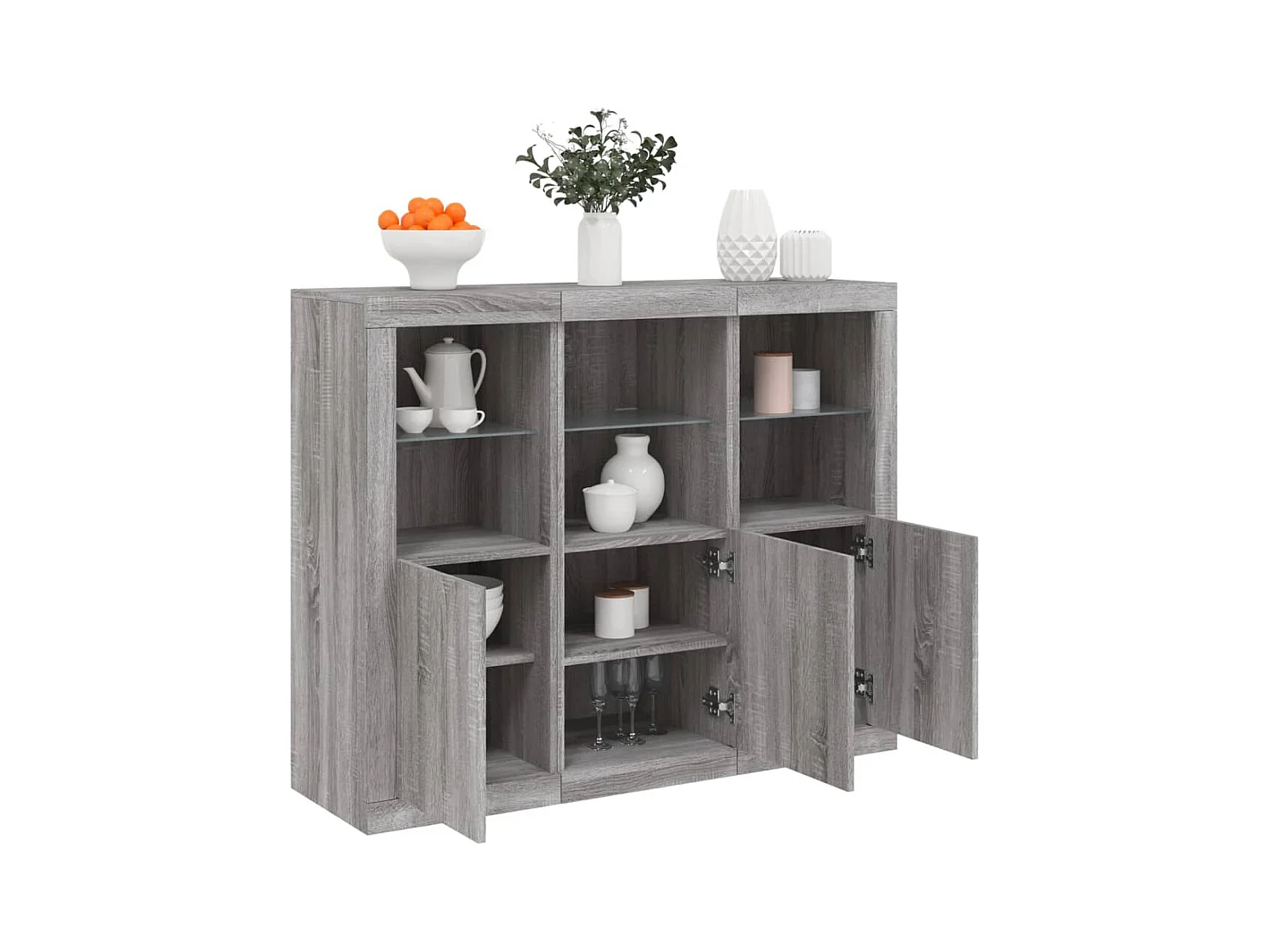 Credenze | Buffet | Armadi con Luci LED 3 pz Grigio Sonoma in Legno Multistrato