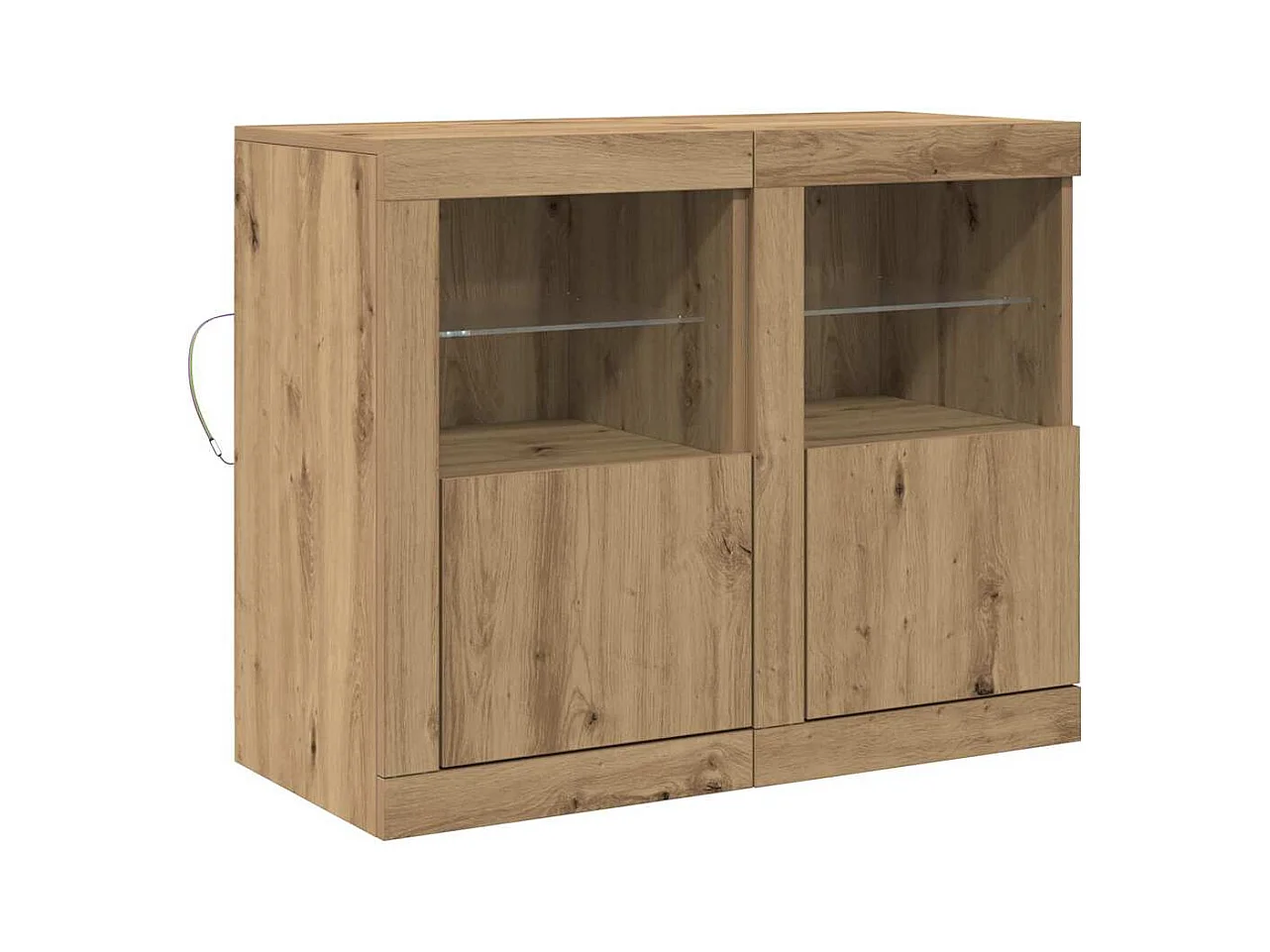 Credenze | Buffet | Armadi Laterali con Luci LED 2 pz Rovere Artigianale 41x37x67 cm