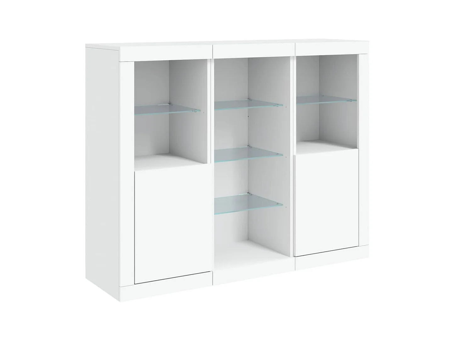 Credenze | Buffet | Armadi con Luci LED 3 pz Bianche in Legno Multistrato