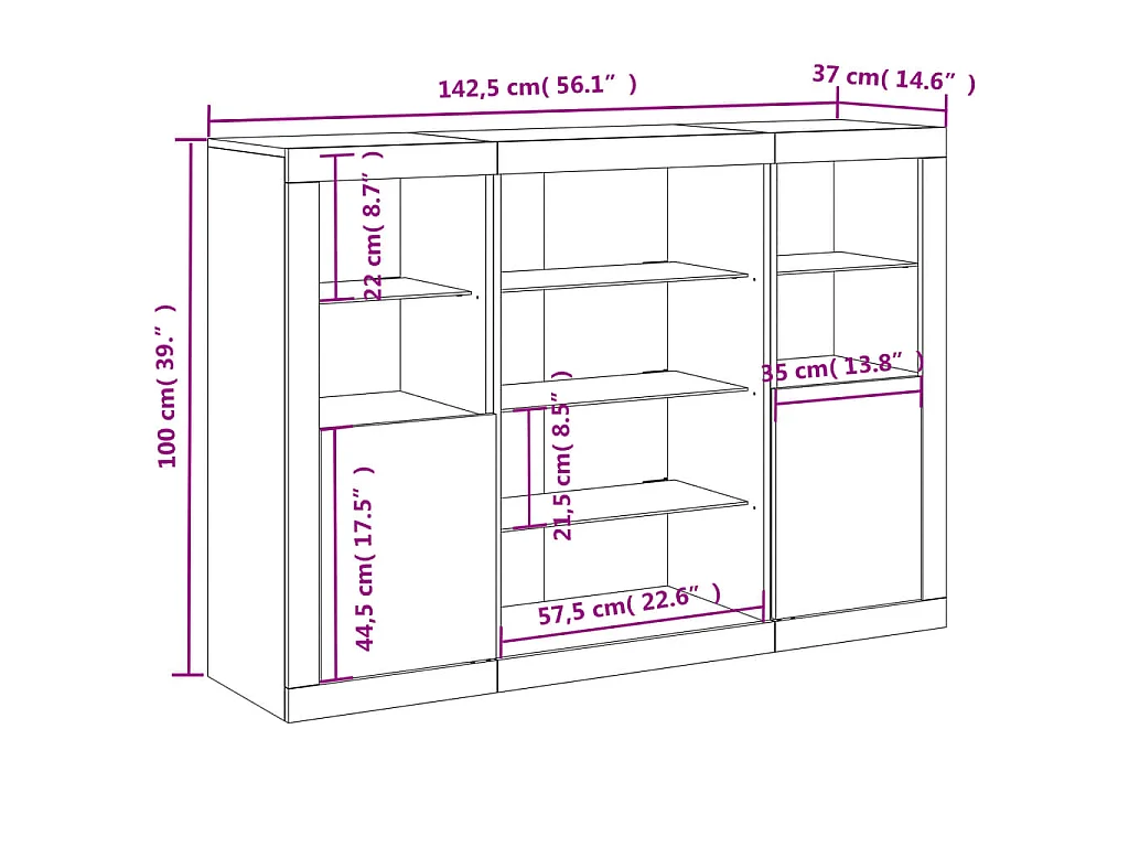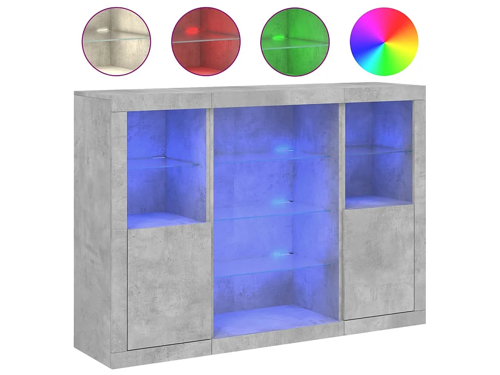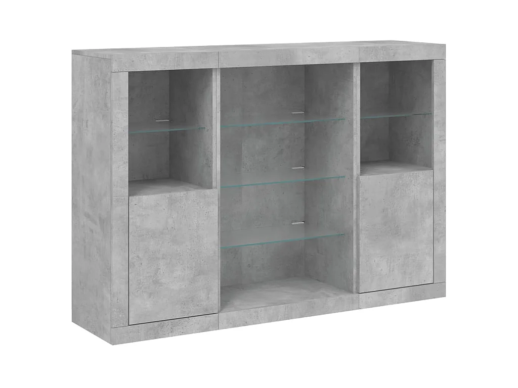 Credenze con Luci LED 3 pz Grigio Cemento in Legno Multistrato