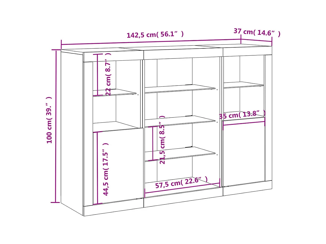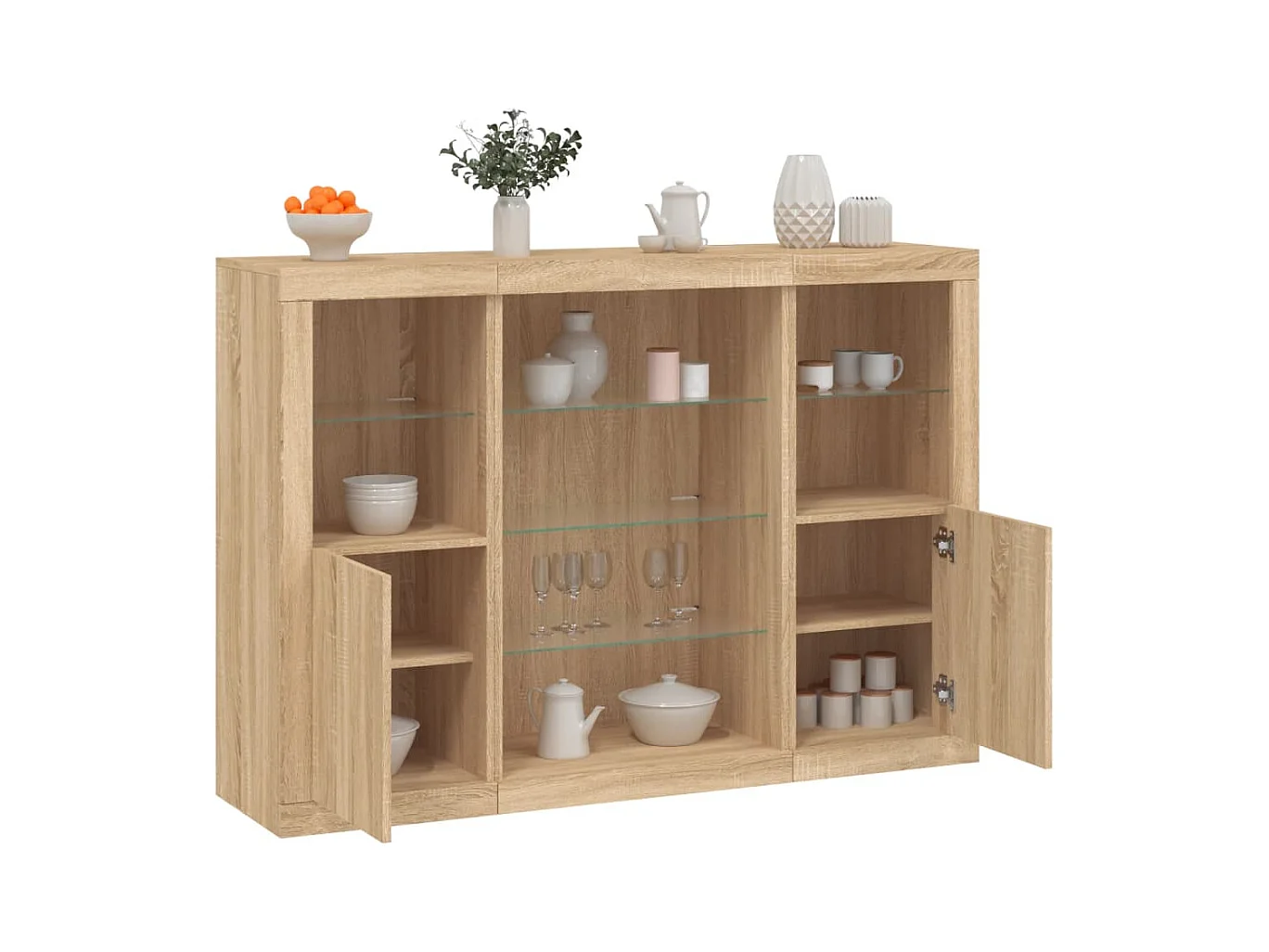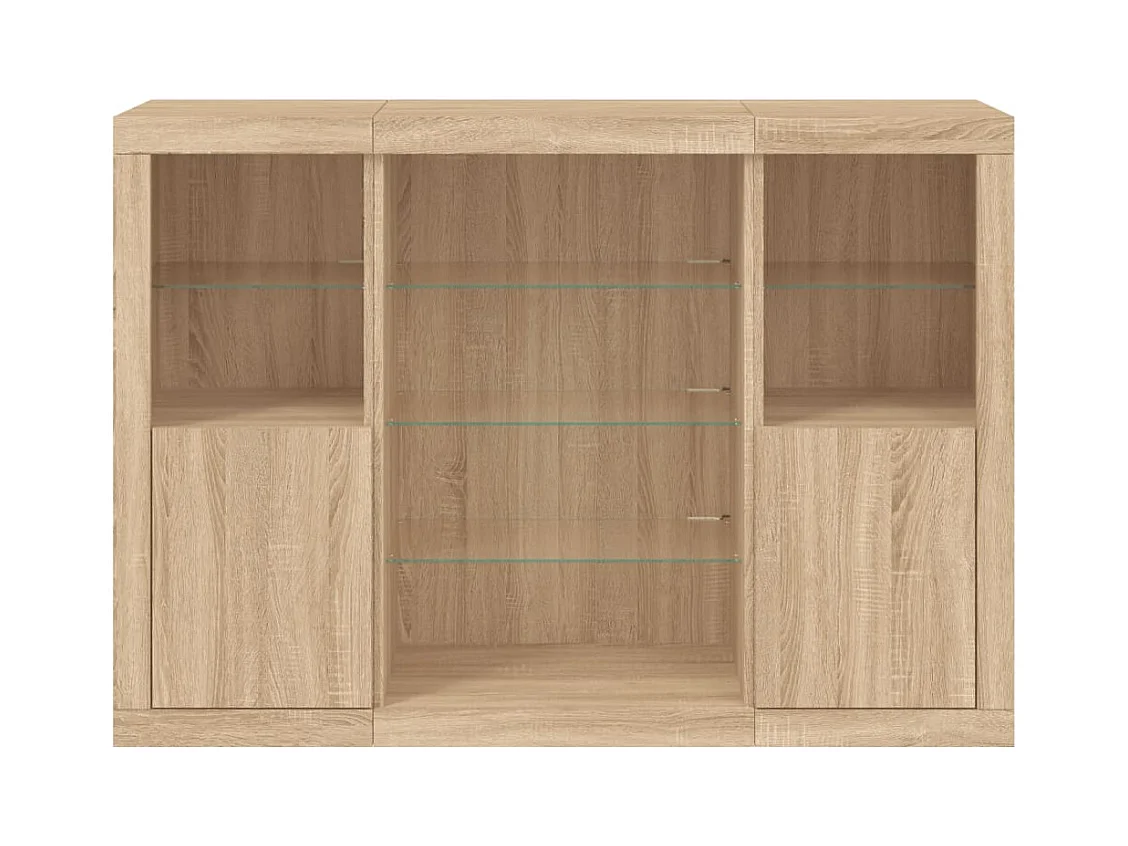 Credenze con Luci LED 3 pz Rovere Sonoma in Legno Multistrato