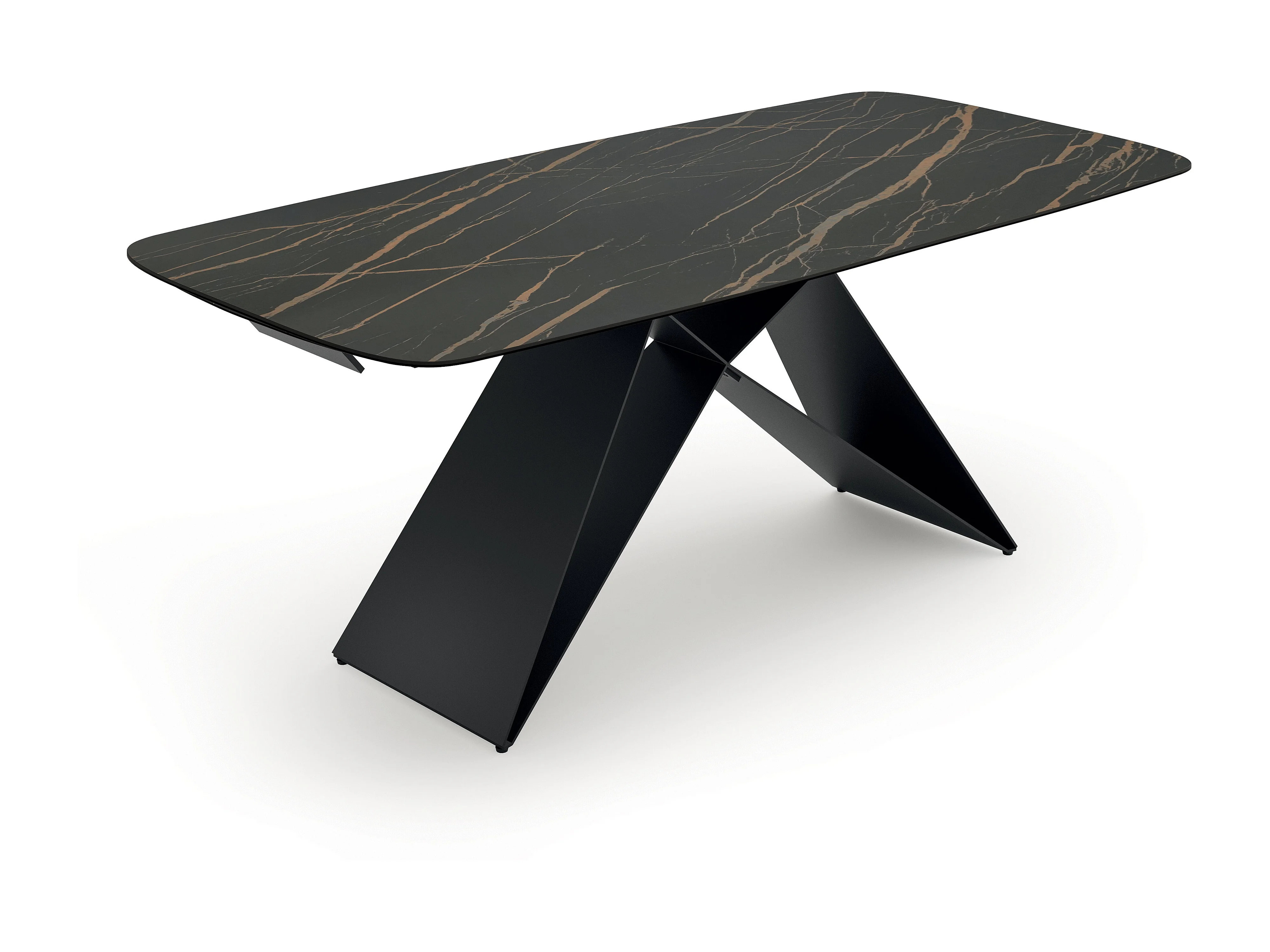 Cruise, Tavolo allungabile con top in ceramica su vetro con gambe in metallo verniciato. Allunghe interne in ceramica. (100cm X 200-280cm H. 76cm)| Duzzle