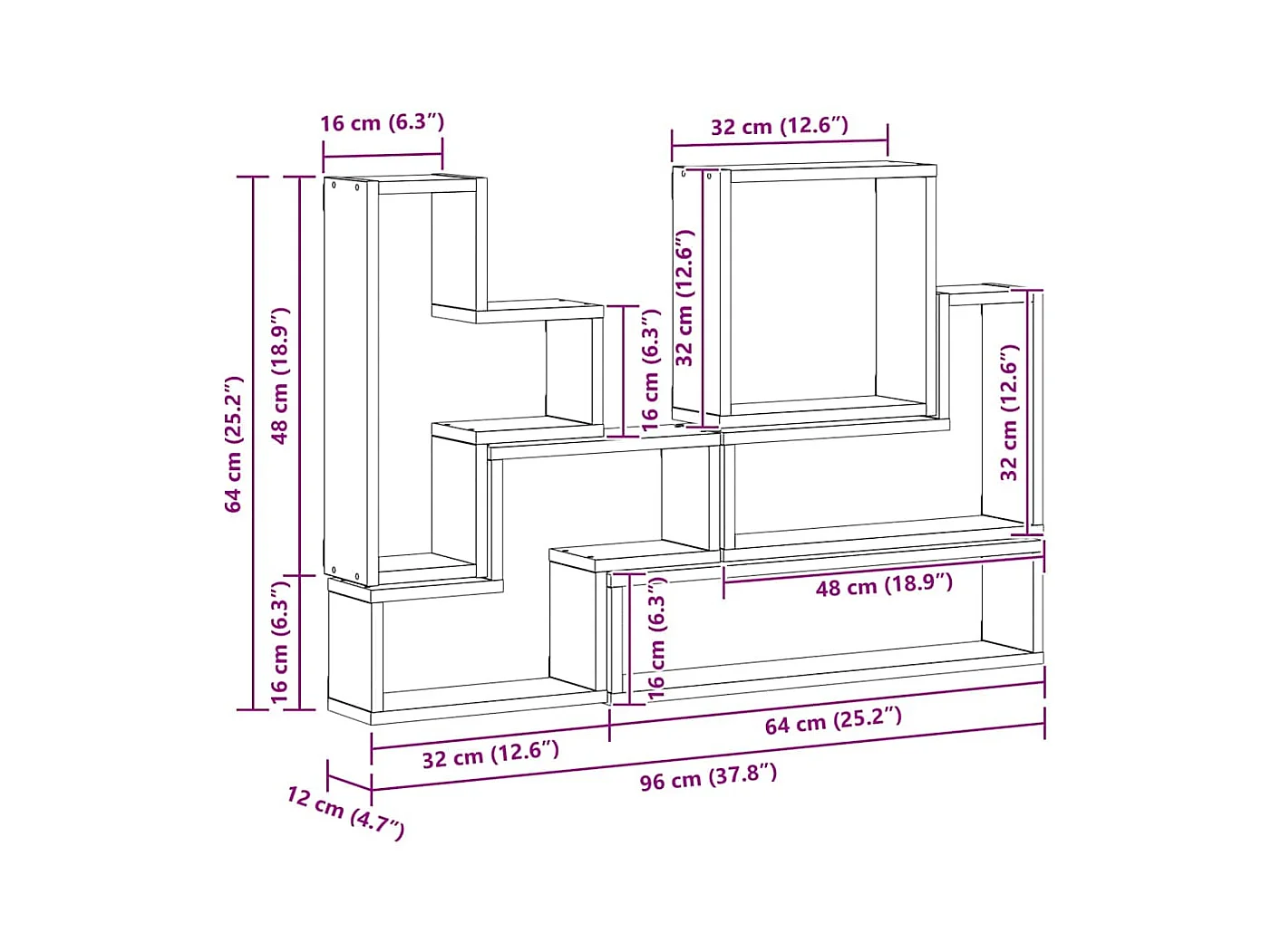 Cubo da parete in rovere fatto a mano 96 x 12 x 64 cm Legno ingegnerizzato