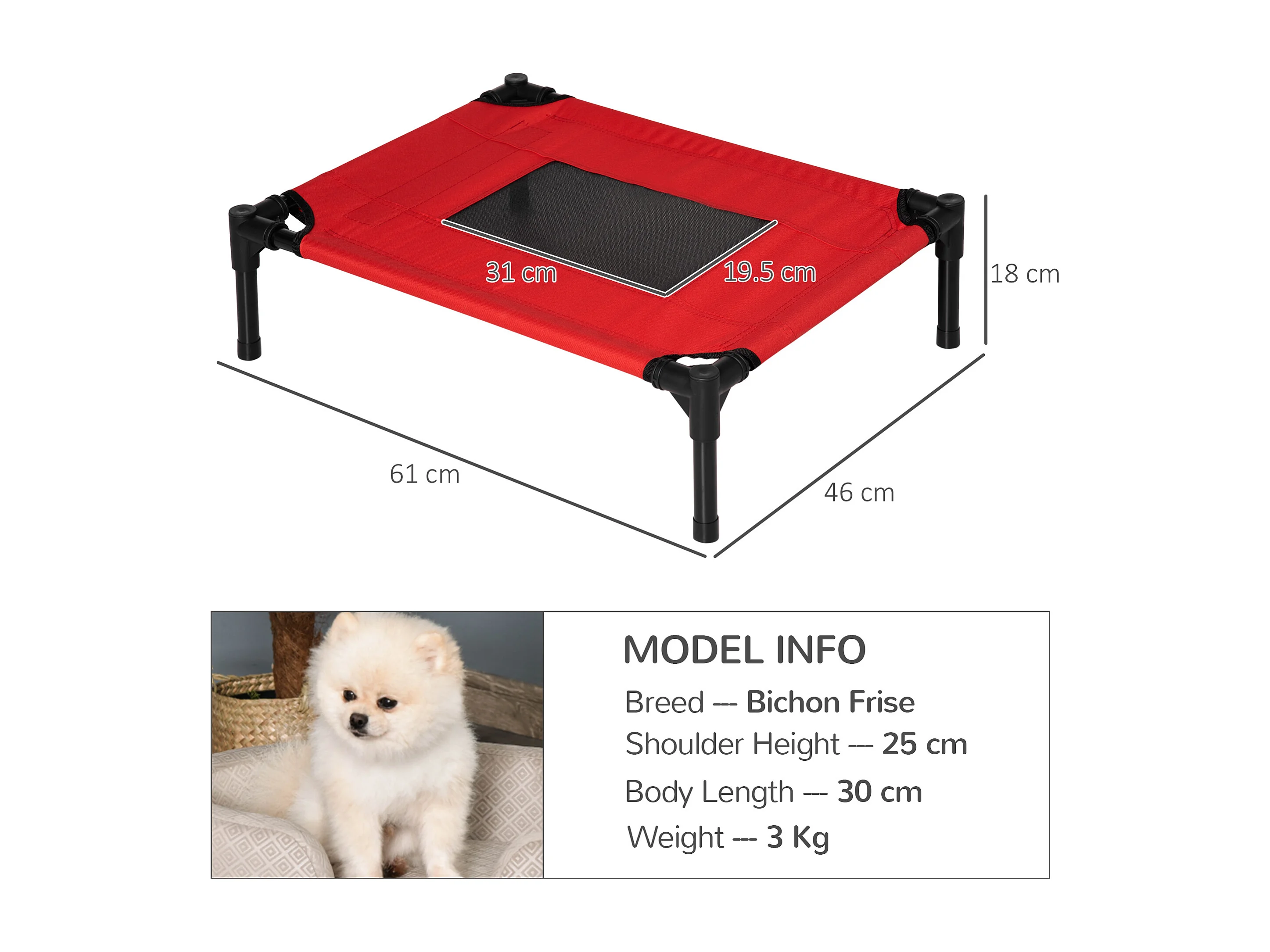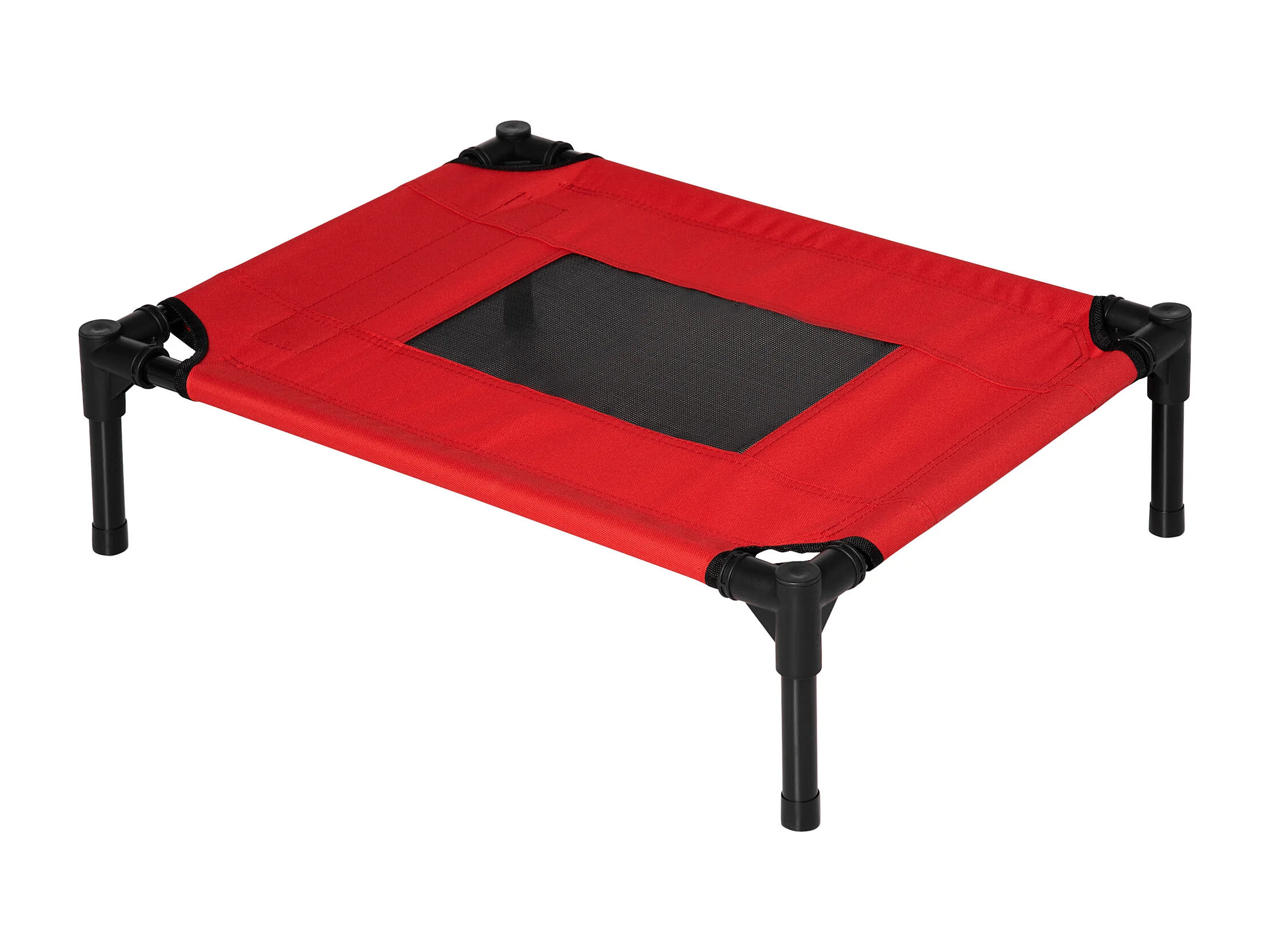 Lettino per cani rialzato in metallo e tessuto oxford rosso