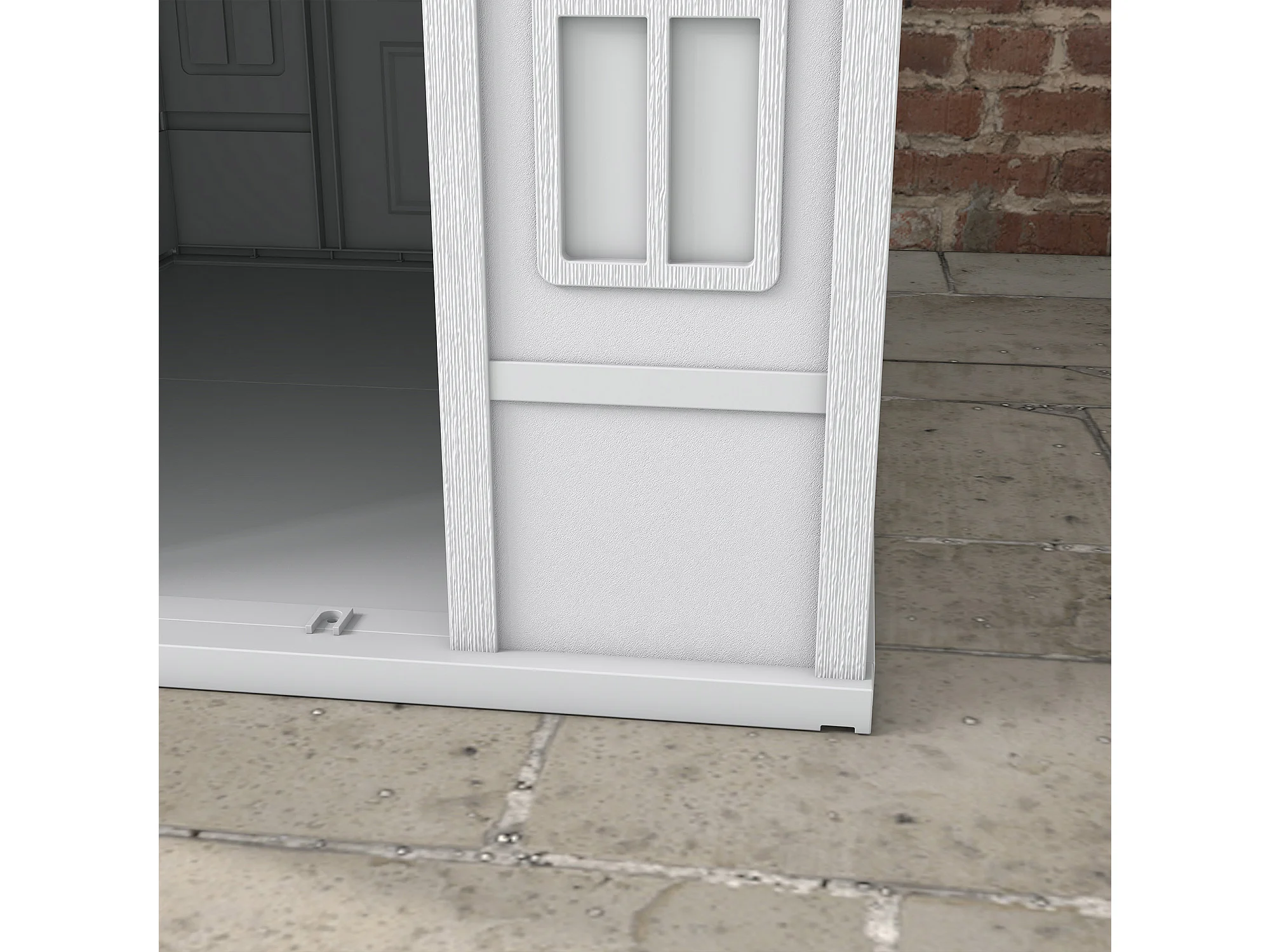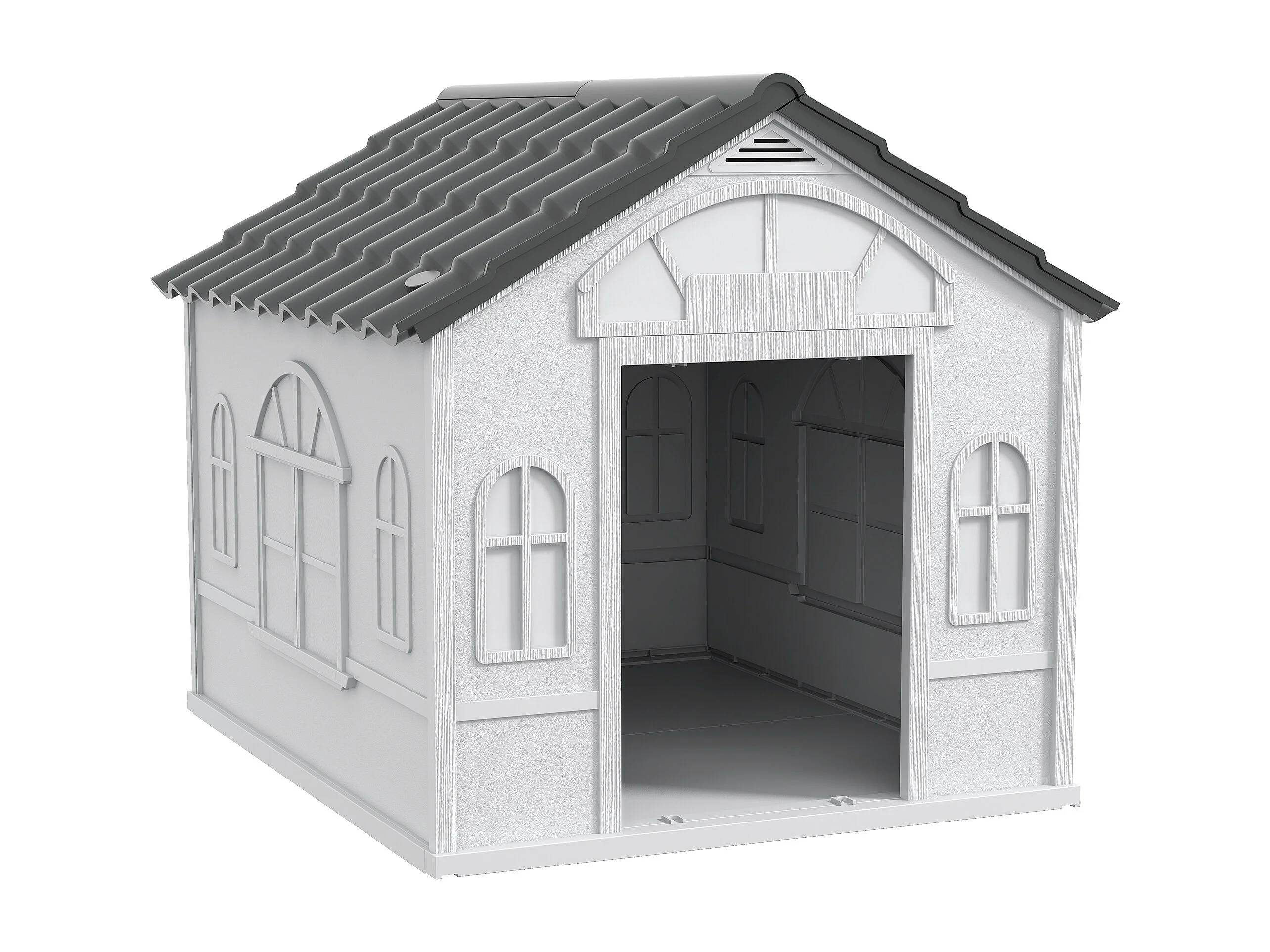 Cuccia per cani da esterno in legno e plastica con portico e finestre
