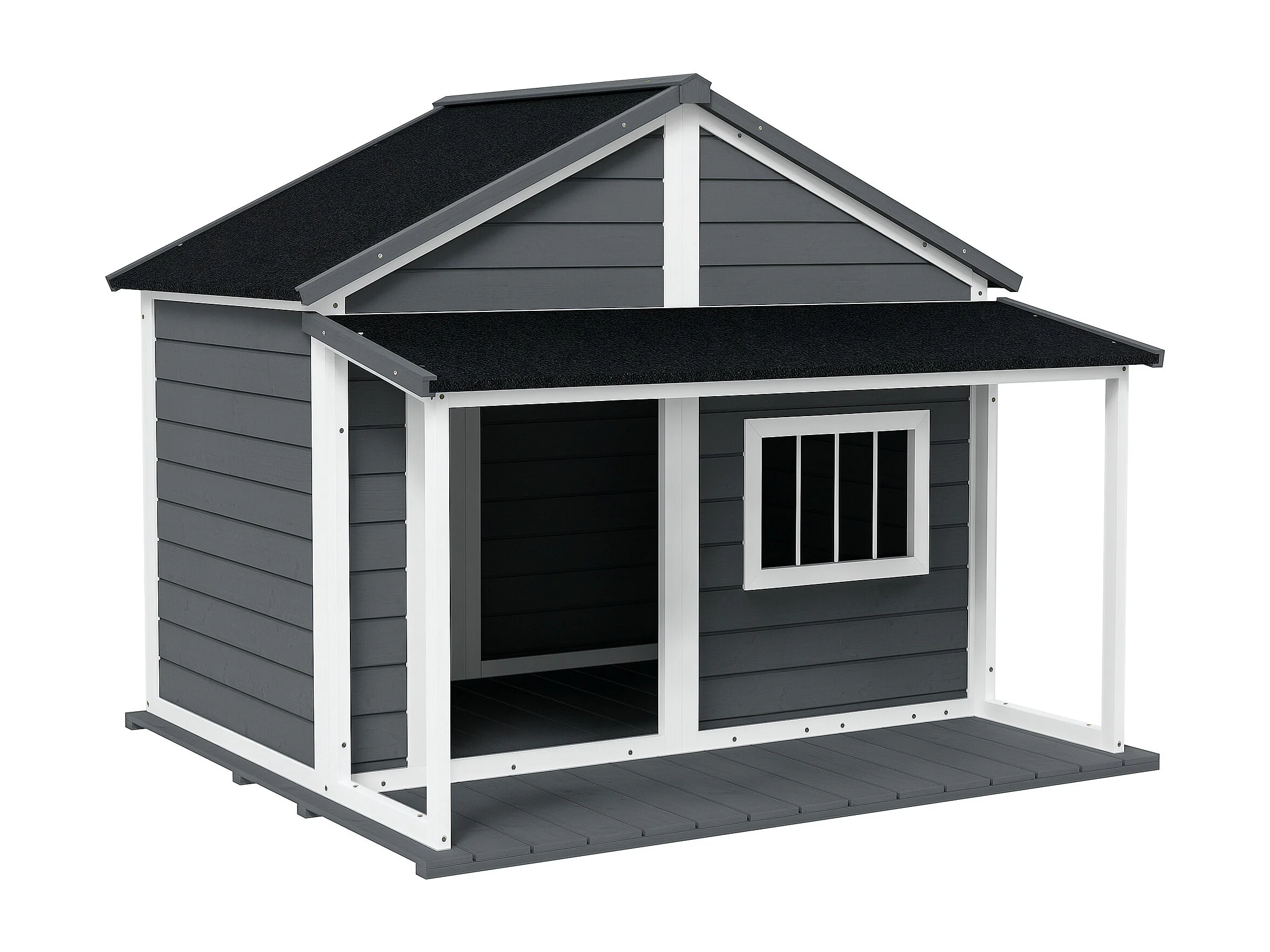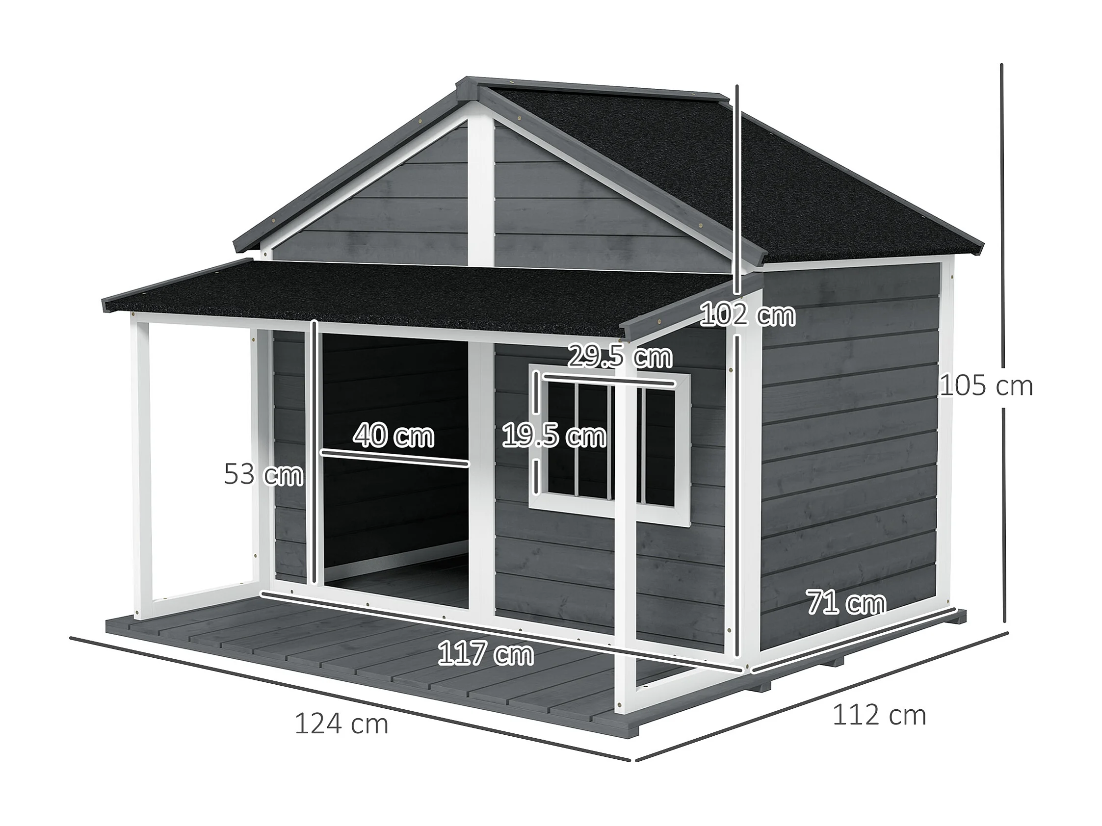 Cuccia per cani da esterno con terrazza e finestra 124x112x105cm, grigio