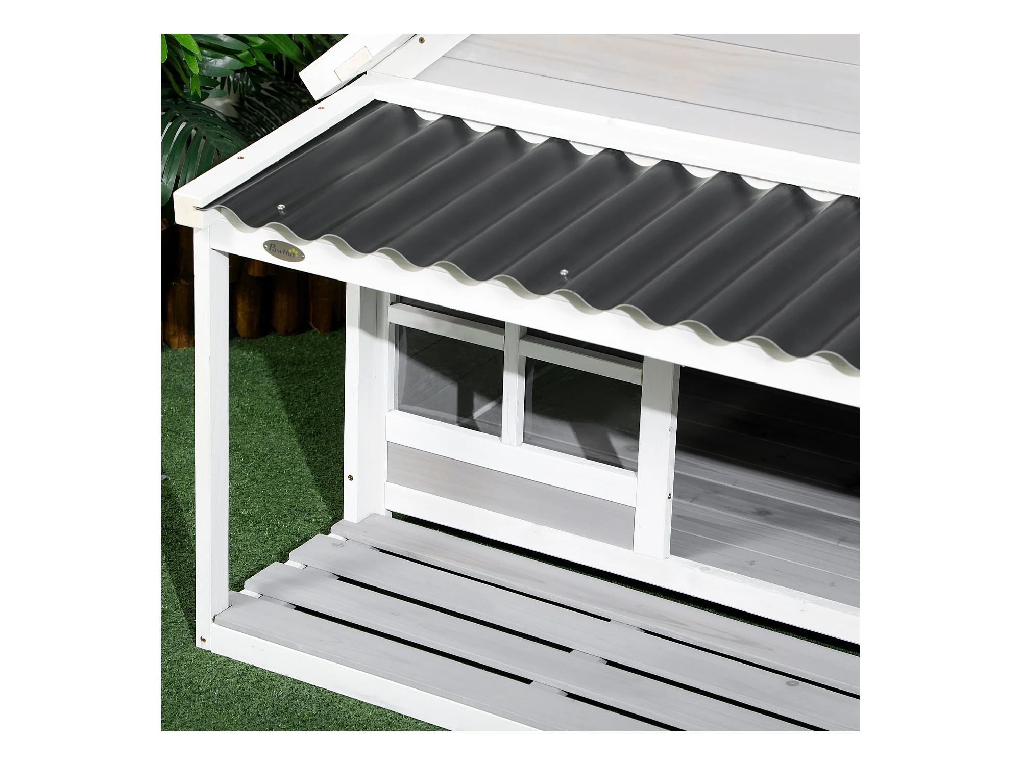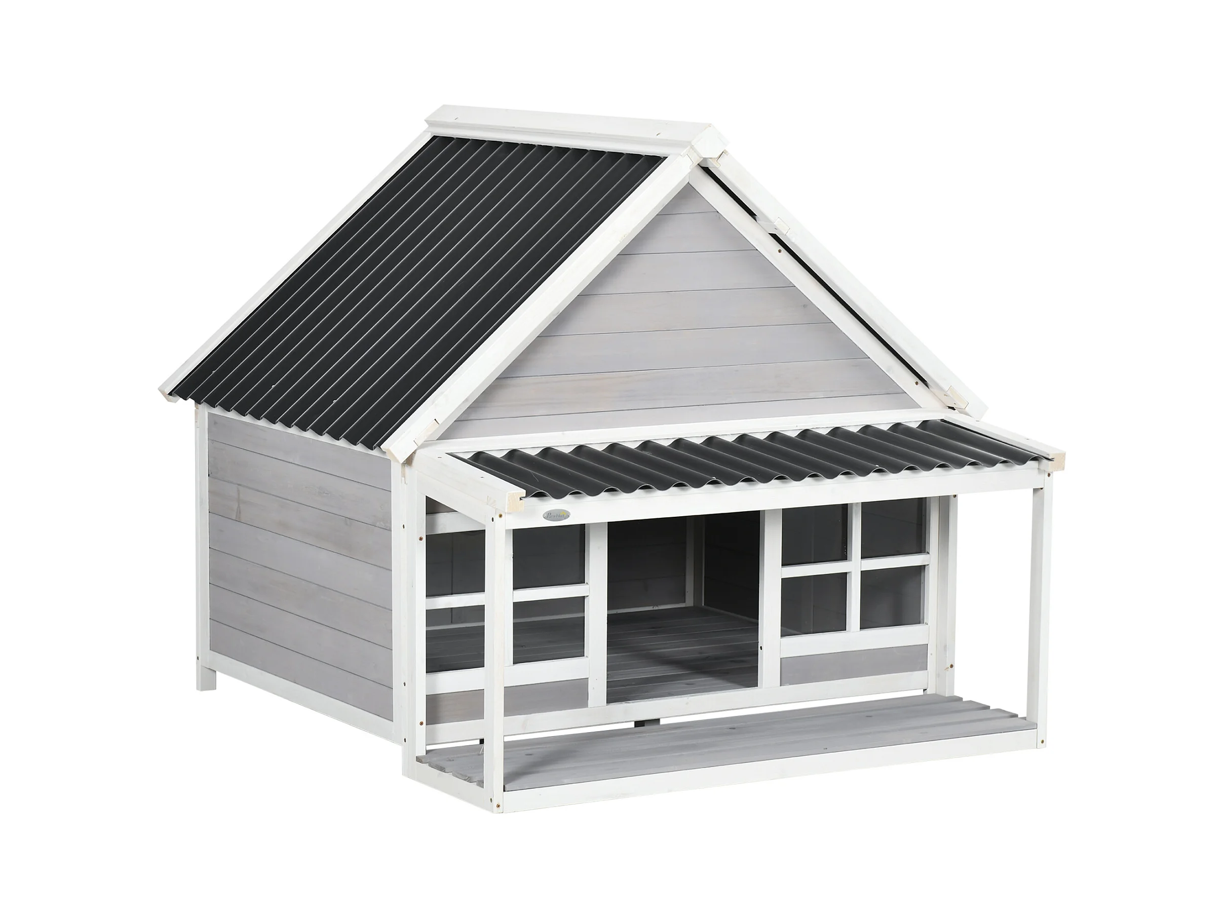 Cuccia per cani da esterno in legno e plastica con portico e finestre
