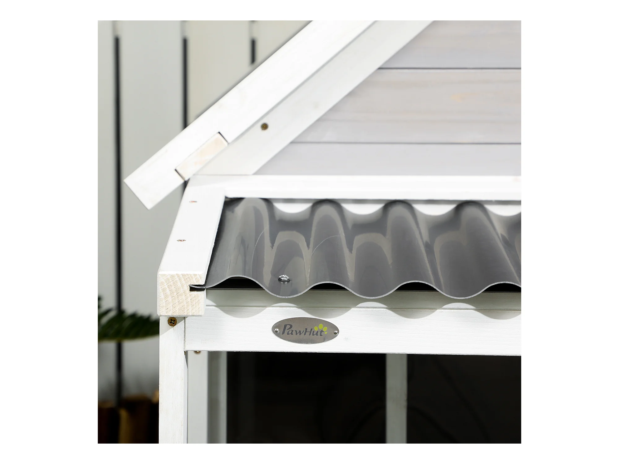 Pollaio nano con recinto, resistente all'inverno, in pino, grigio e bianco, posatoi e nido inclusi (196x76x97cm)