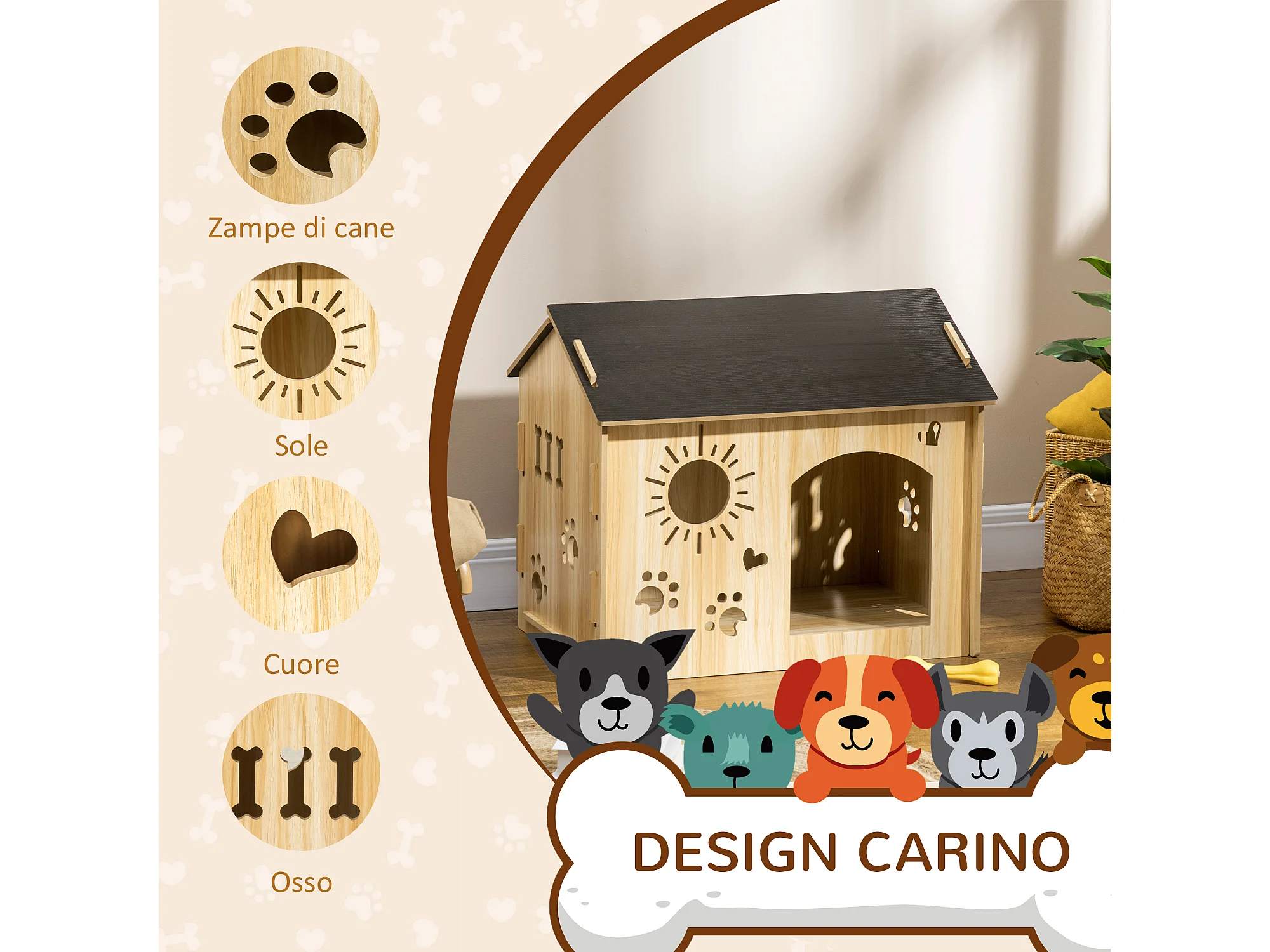 Cuccia per cani da interno a forma di casetta in legno rovere