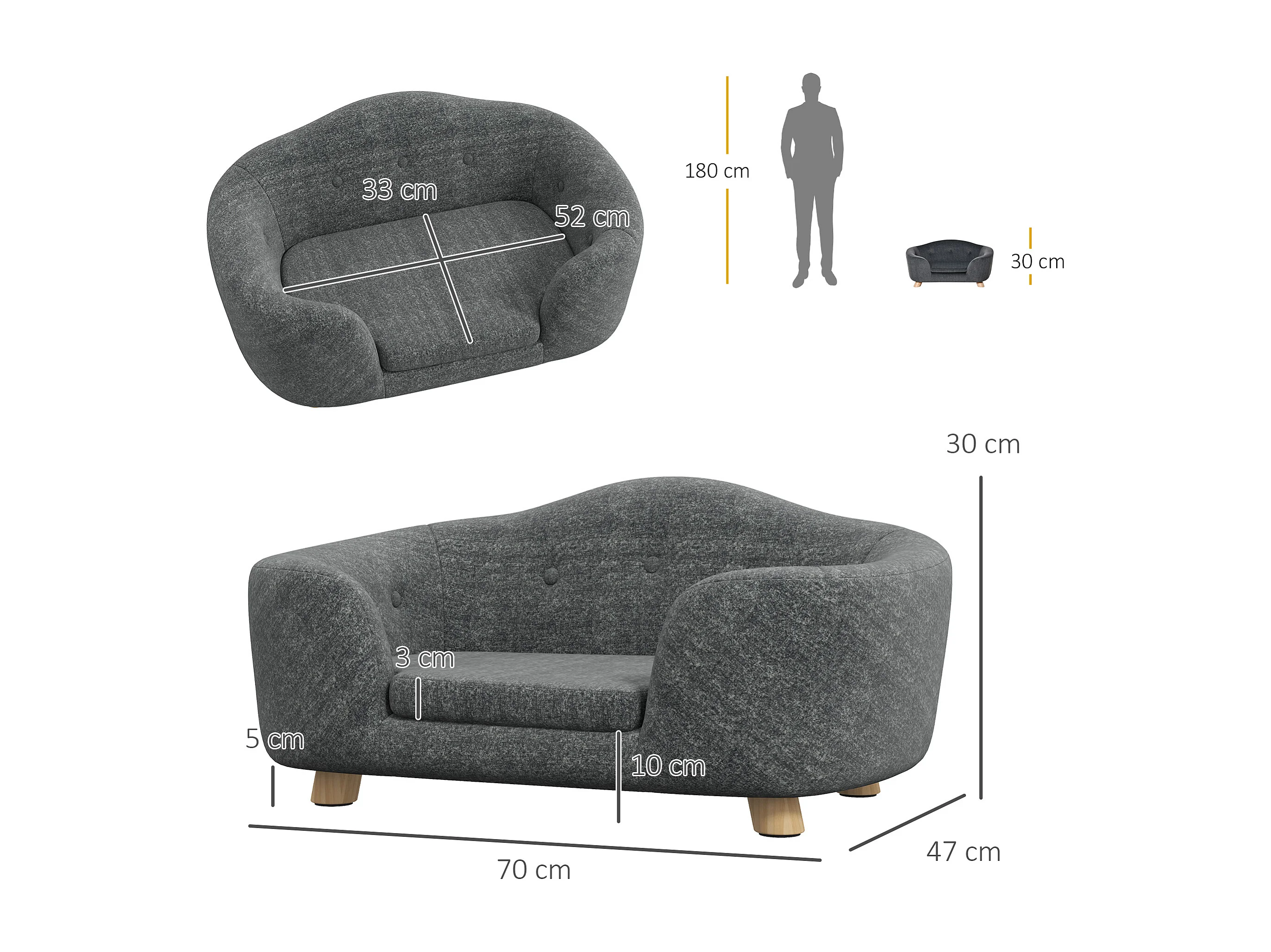 Divano per cani morbido con braccioli di supporto in tessuto grigio