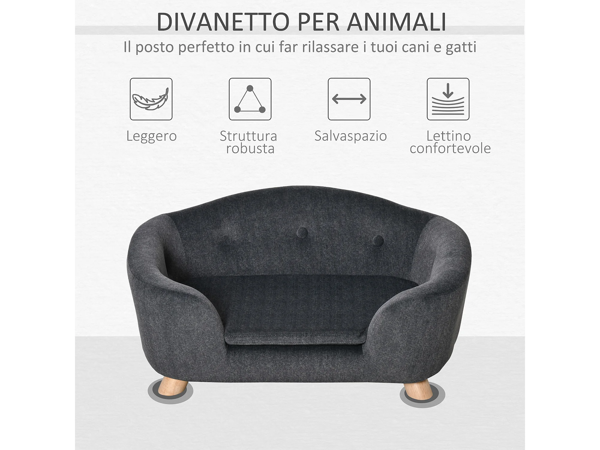 Divano per cani e gatti con cuscino imbottito in velluto e legno grigio
