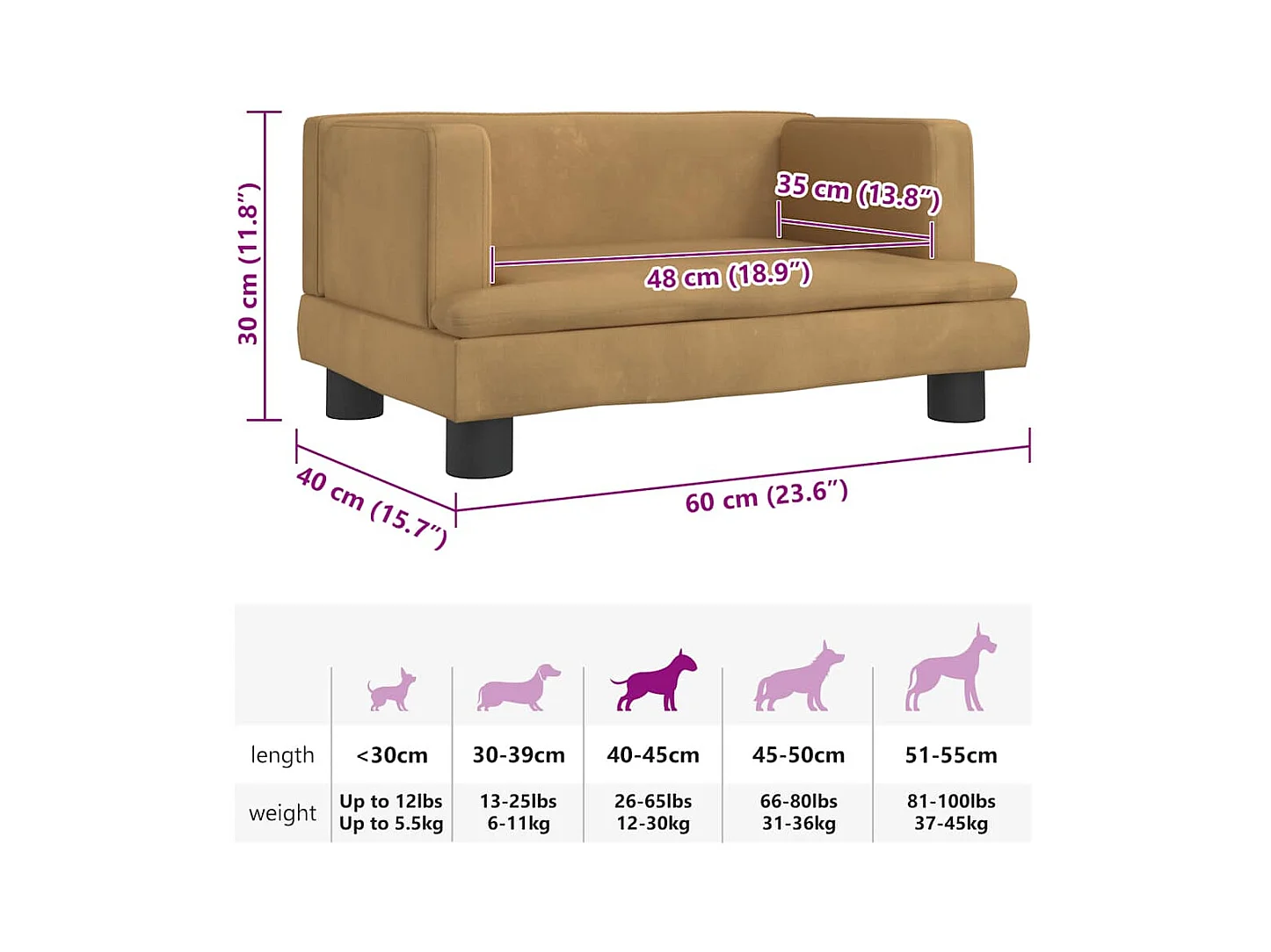 Cuccia per cani marrone 60x40x30 cm in velluto