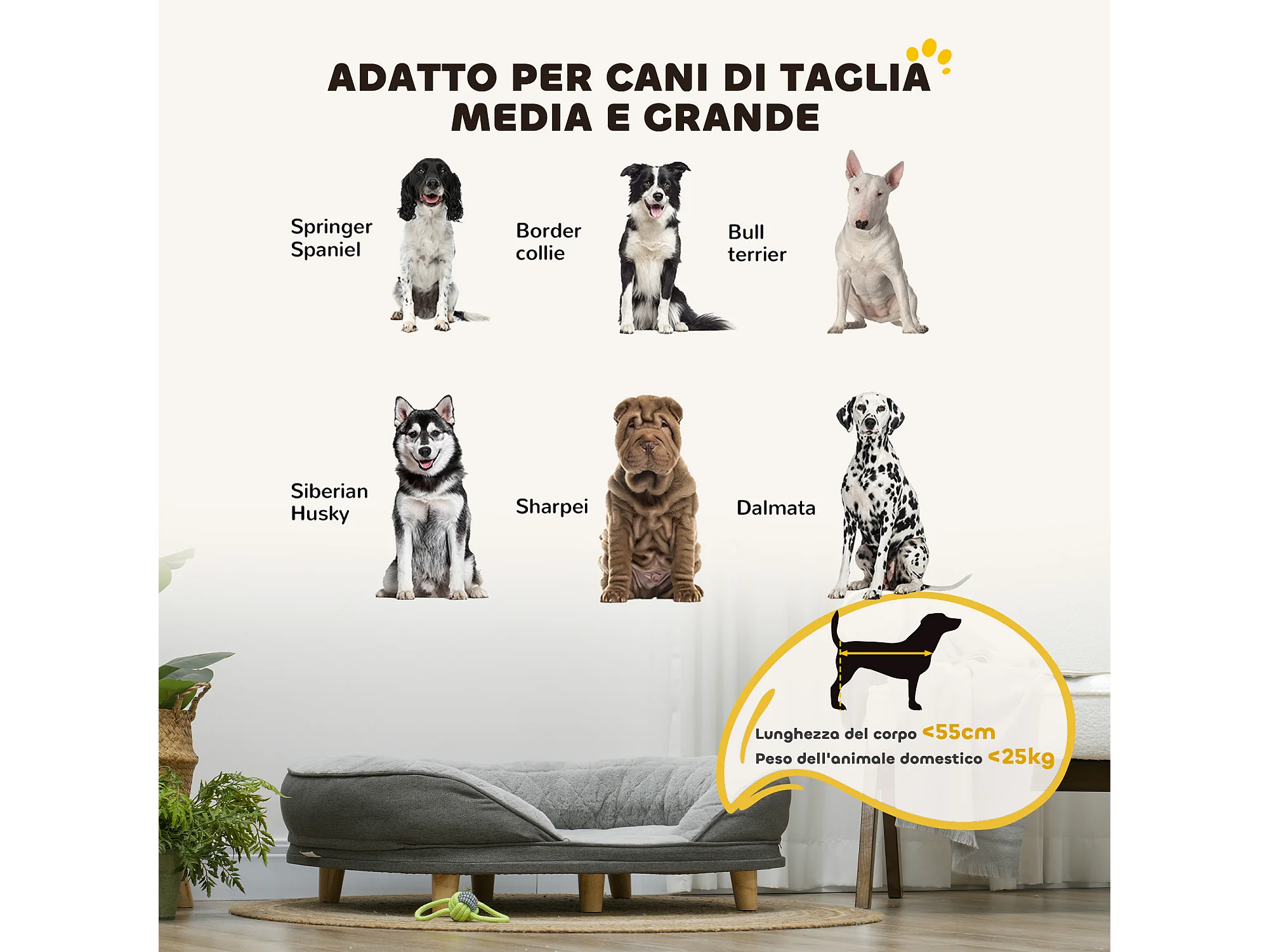 Cuccia per cani taglia grande e media fino 25kg con imbottitura grigio