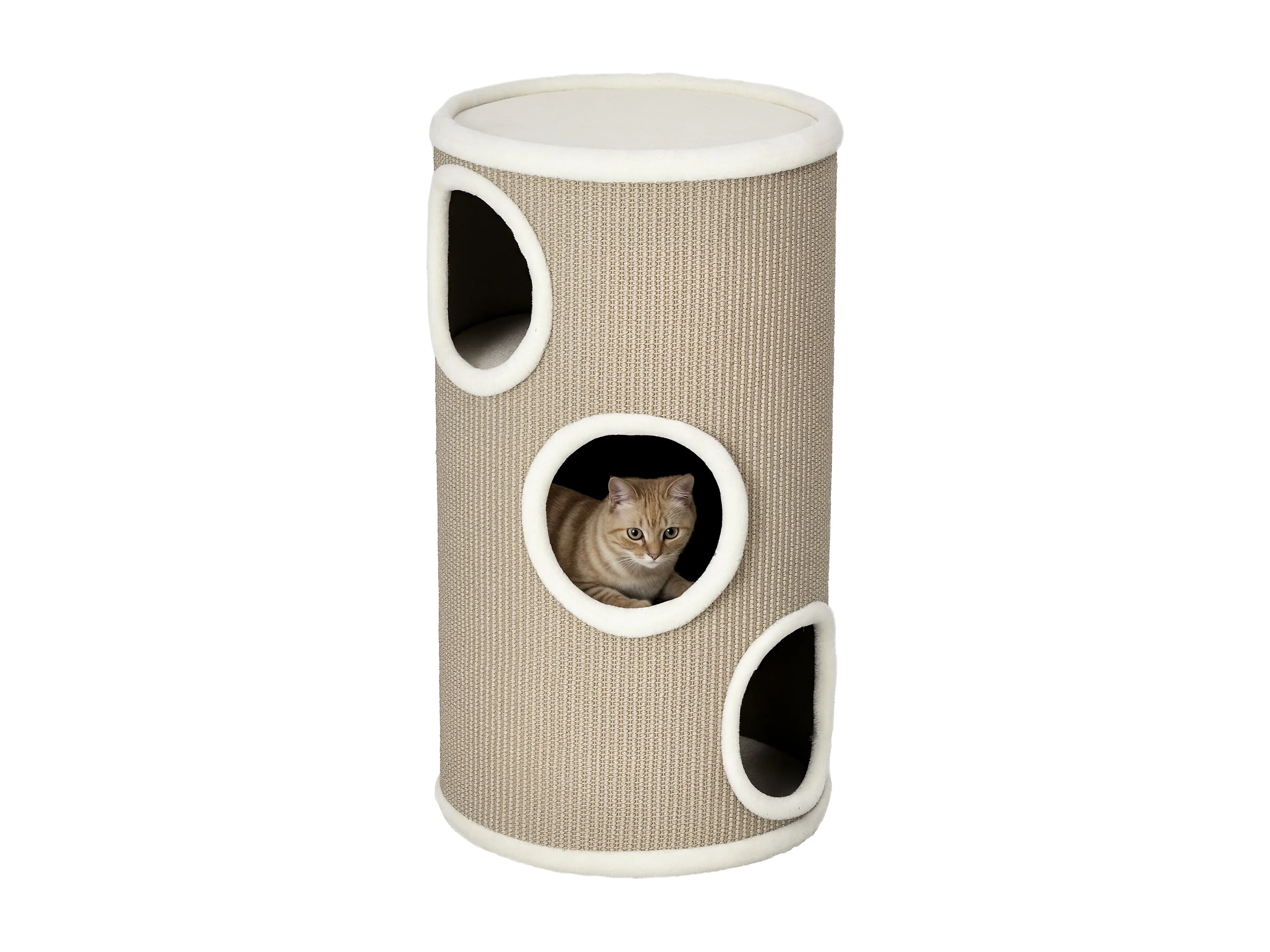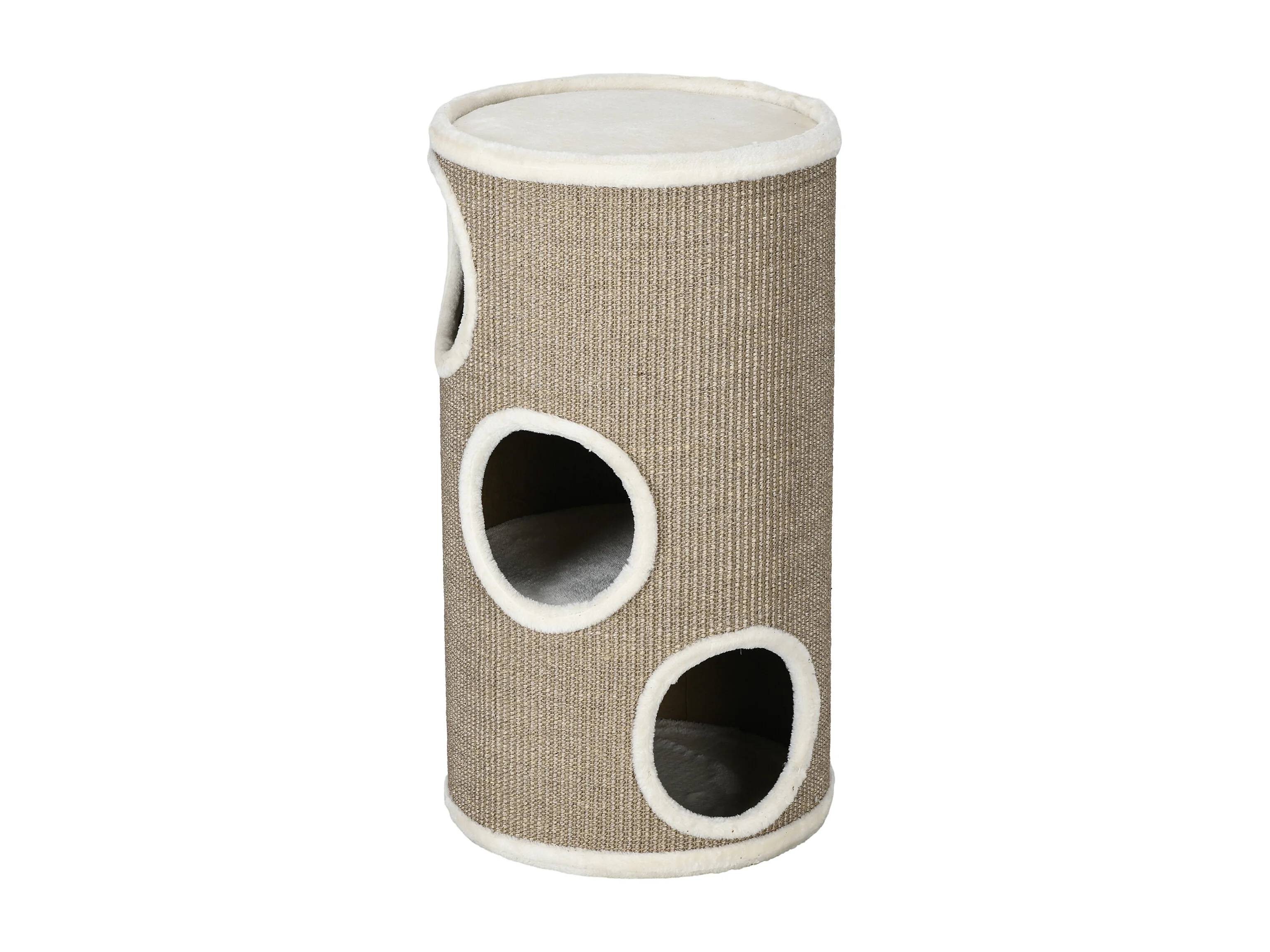 Cuccia per gatti a 3 livelli con tiragraffi in sisal e peluche marrone