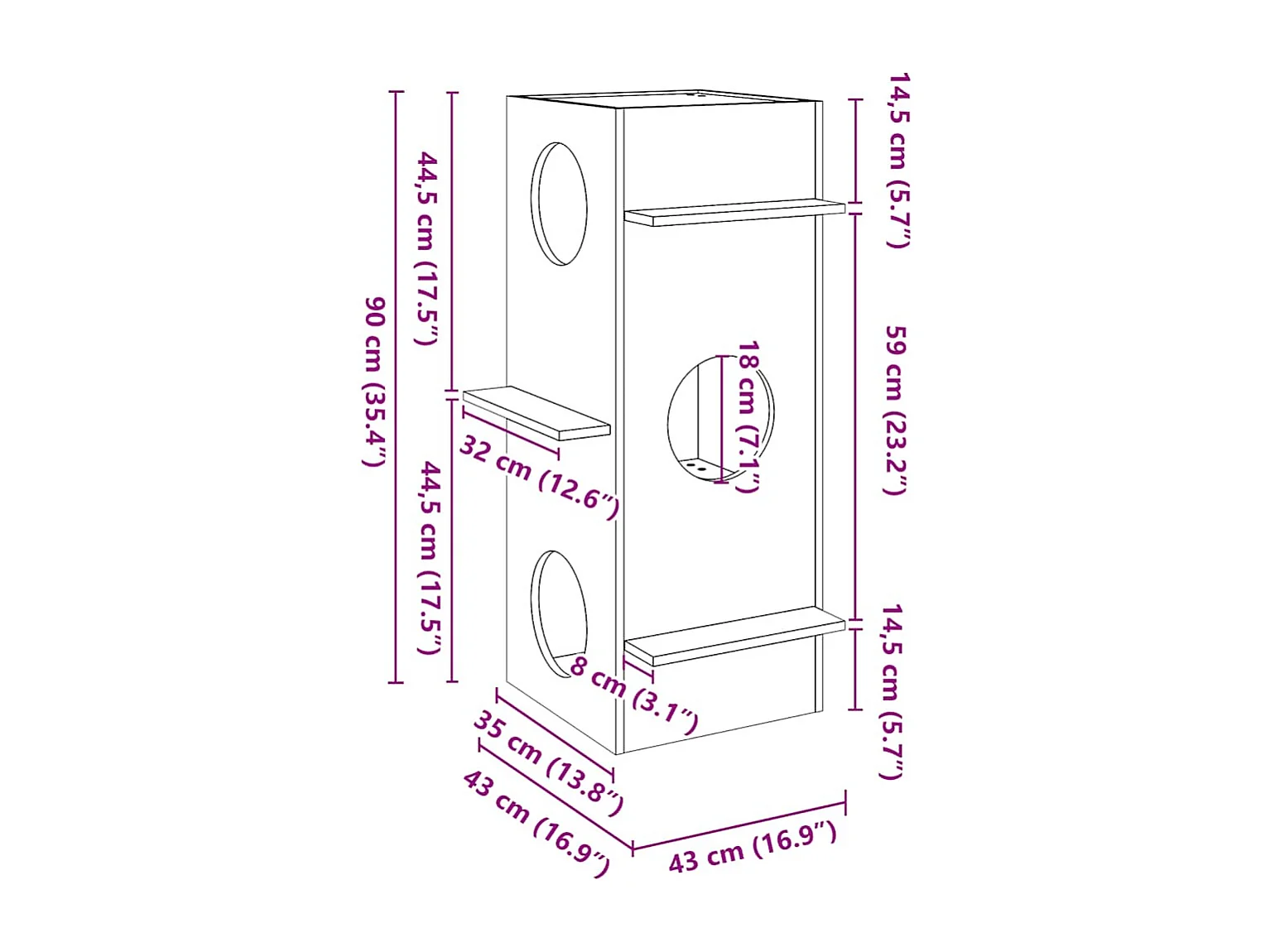 Cuccia per gatti in cera marrone 43x43x90 cm in legno di pino massello