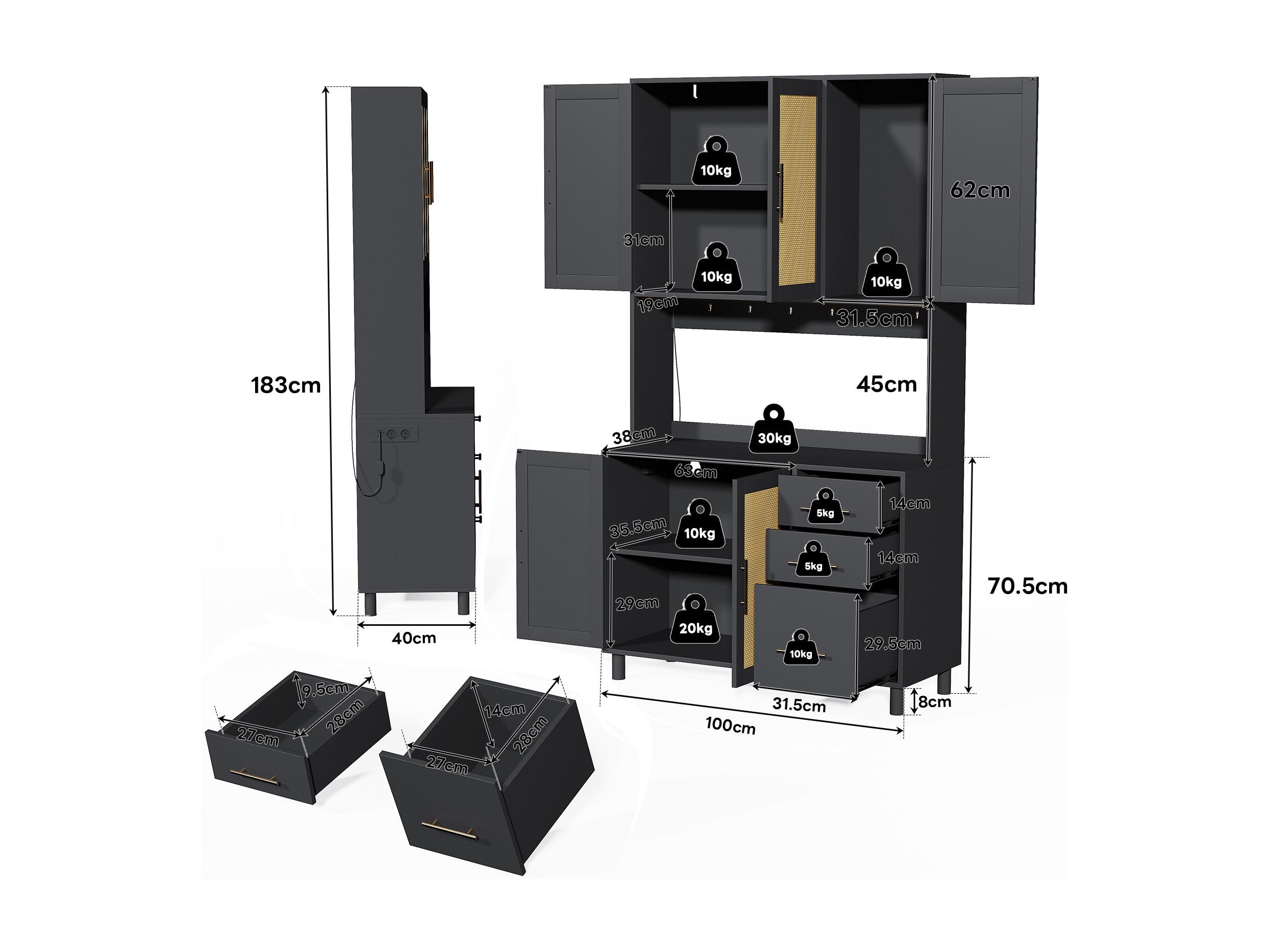 Armadio murale 110 cm con porte coulissantes rotin résistant rangement salon chambre Bureau noir