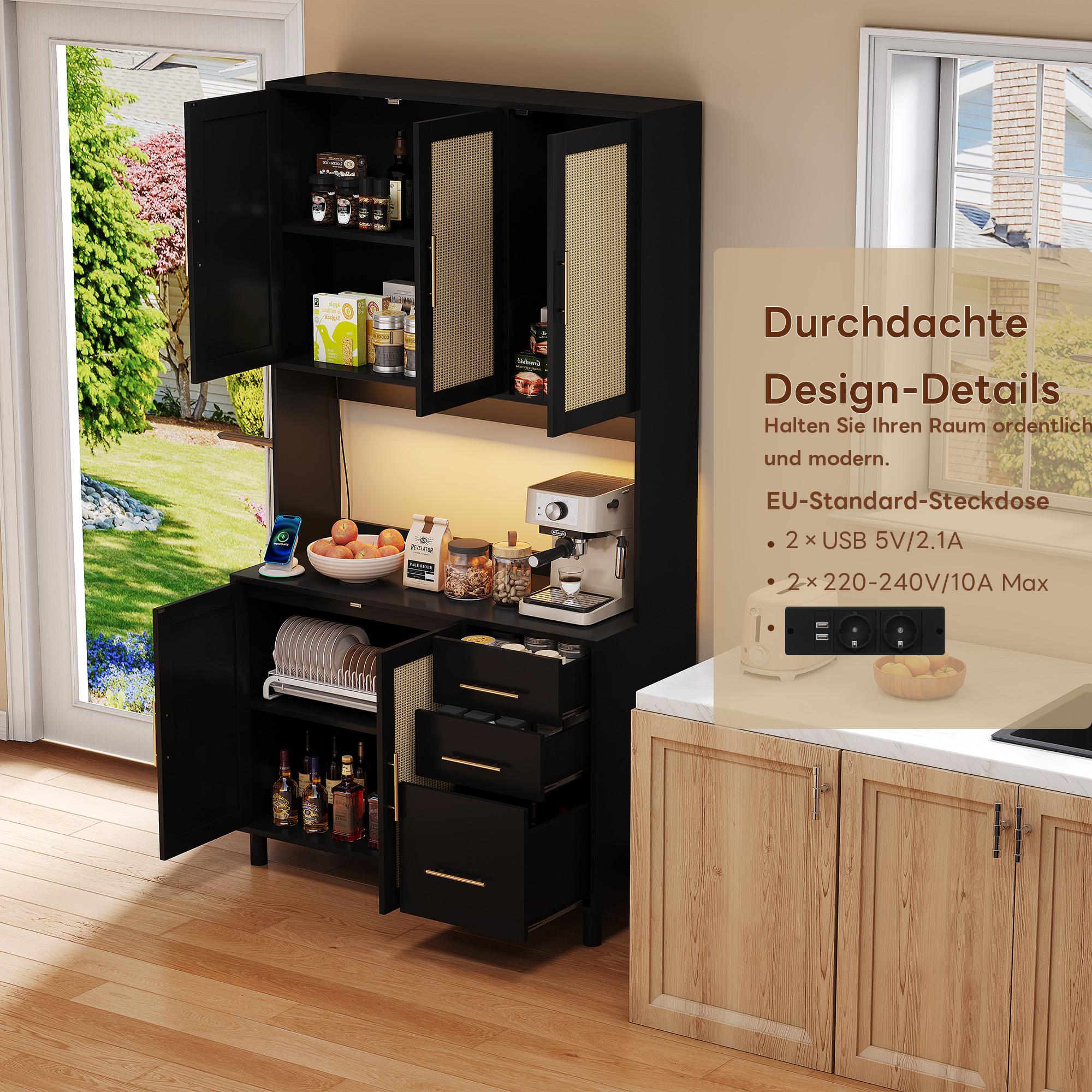 Cucina a buffet 183 cm Rattan MDF LED USB prezzo 3 ripiani rangement moderne doré