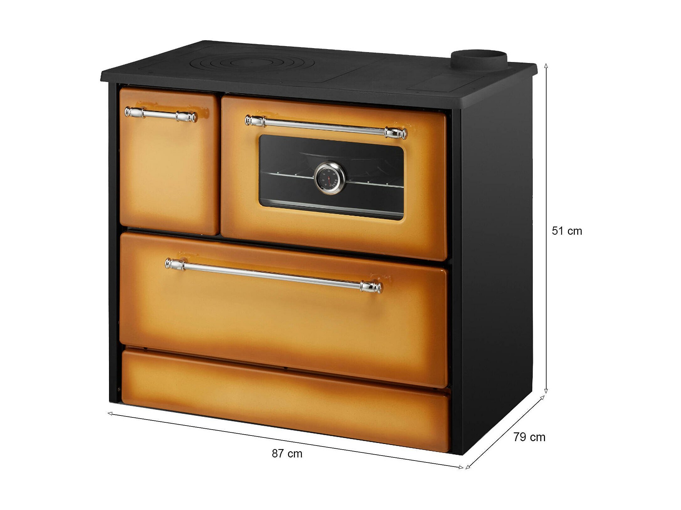 Cucina a Legna Andalo, Made in Italy, 51x87x79h cm Nero
