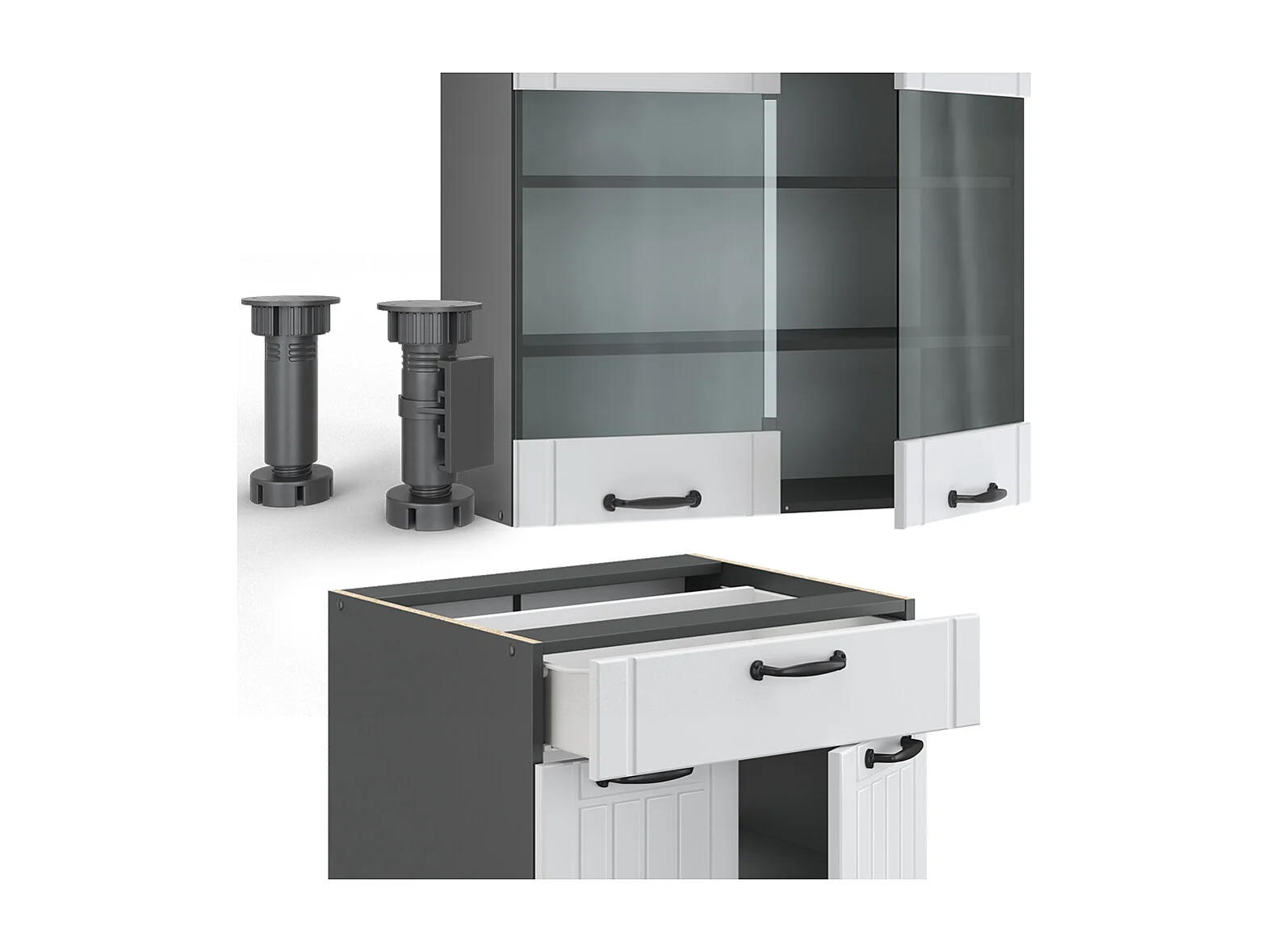 Cucina completa bianco casa di campagna/antracite 140x60x81.6 fame-line