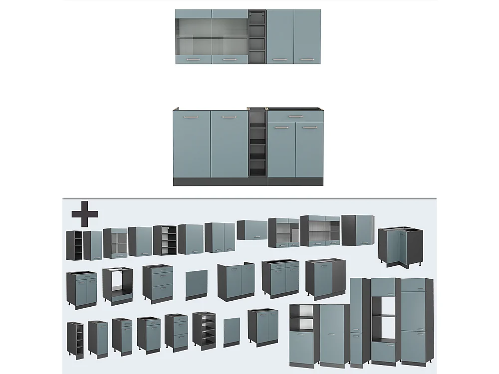Cucina completa blu-grigio/antracite 160x60x81.6 r-line