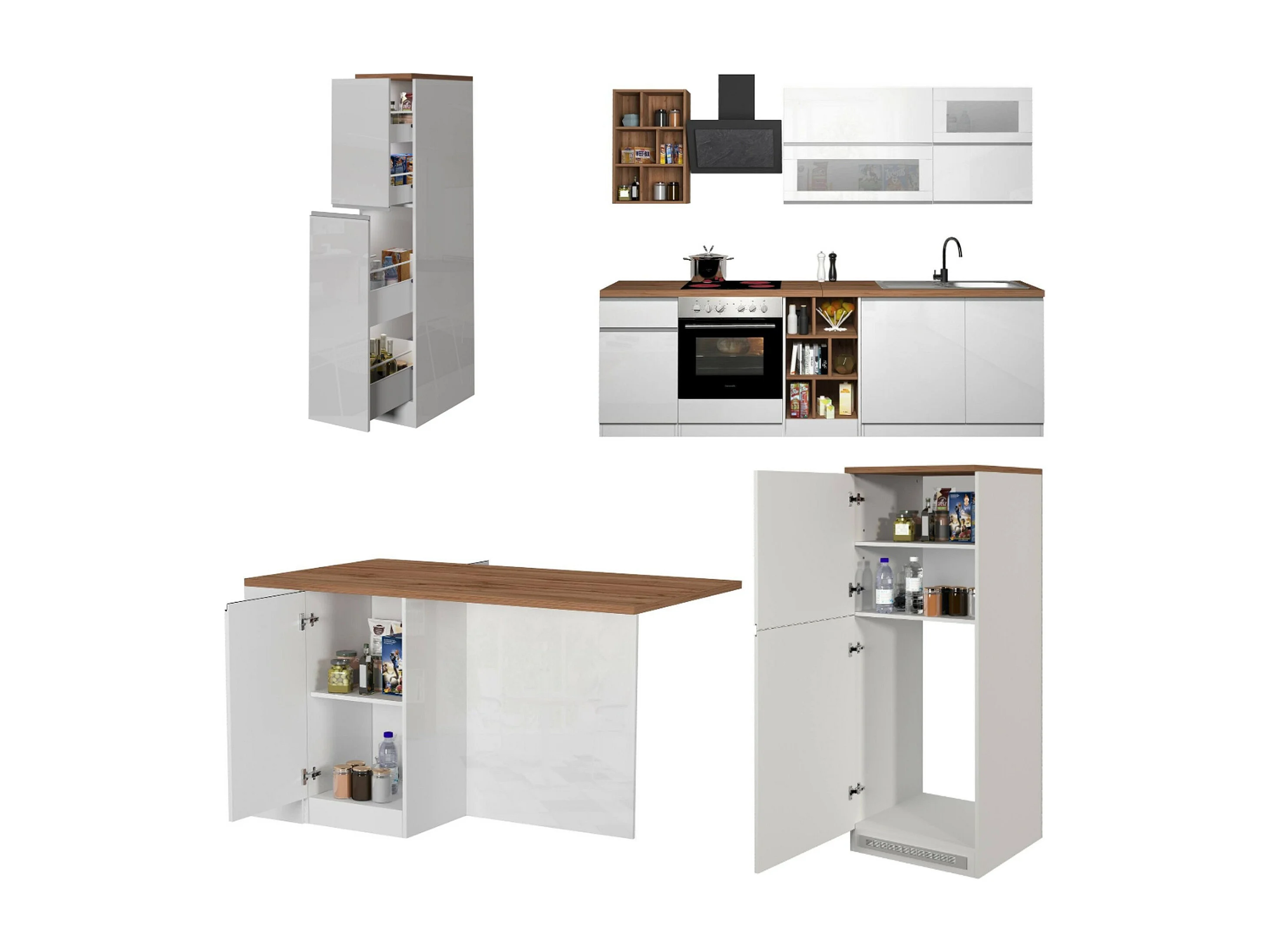 Cucina Completa Armend, Modulabile Made in Italy, Bianco Lucido